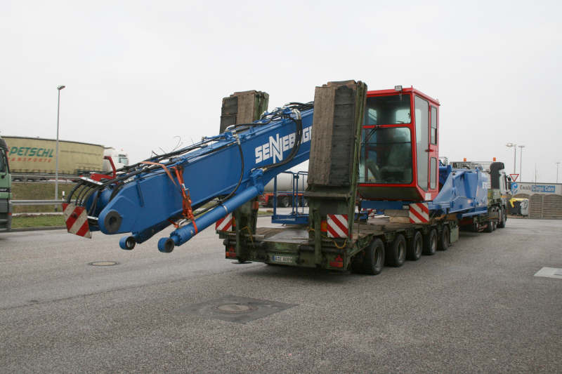 Günter Eibig konnte im Fühjahr 2008 diesen Transport eines Sennebogen Umschlagbaggers ablichten.