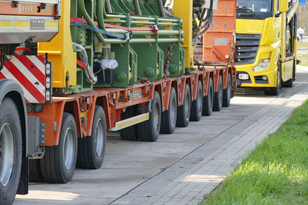 Die Transportkombination bestand aus Scania R 580 8x4 mit Goldhofer MPA 9 (2+7) Semitieflader.