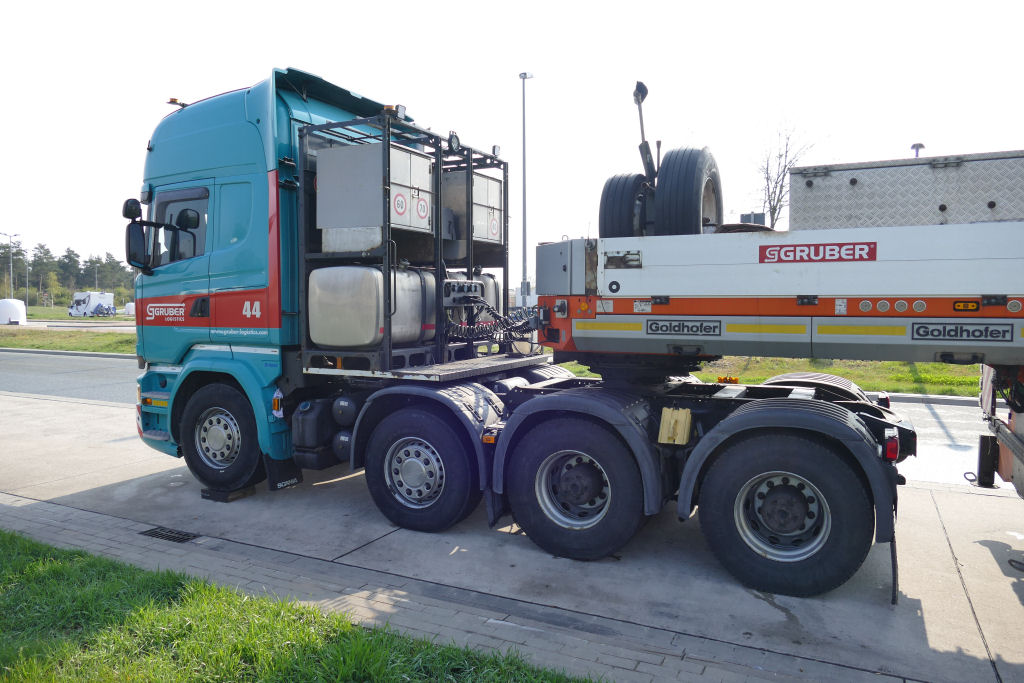 Im Mai 2021 stand dieser Transport von Gruber Logistics auf dem Rasthof Lüneburger Heide Ost an der A 7.