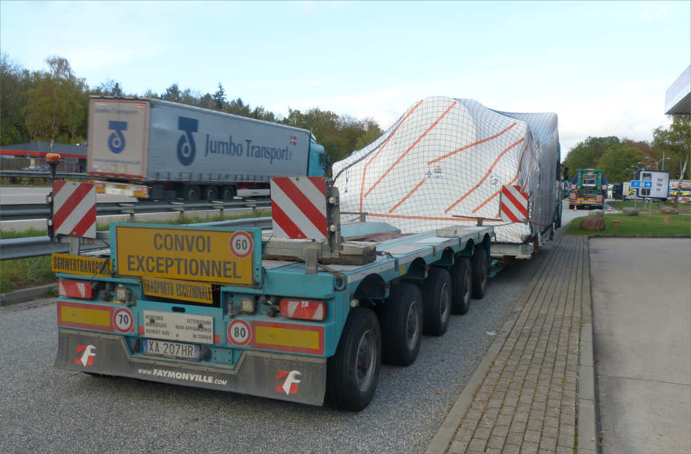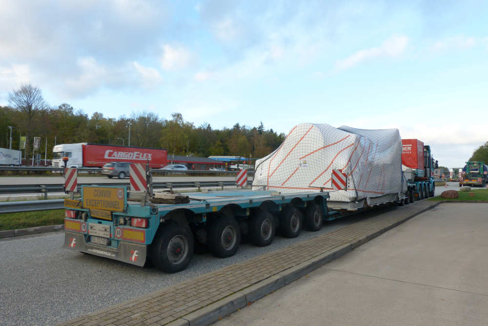 Scania R 730 8x4 mit Faymonville Variomax 3-5 Tieflader und Maschinenteiltransport