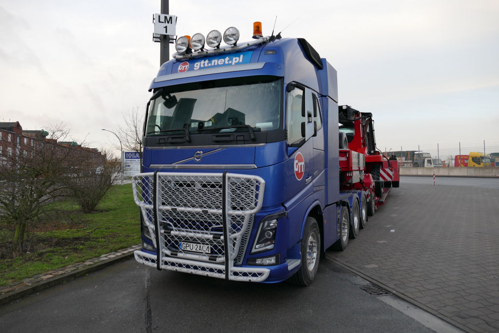 Die Transportkombination bestand aus Volvo FH 04 8x4 Zugmaschine und Nooteboom Euro ICP Tieflader