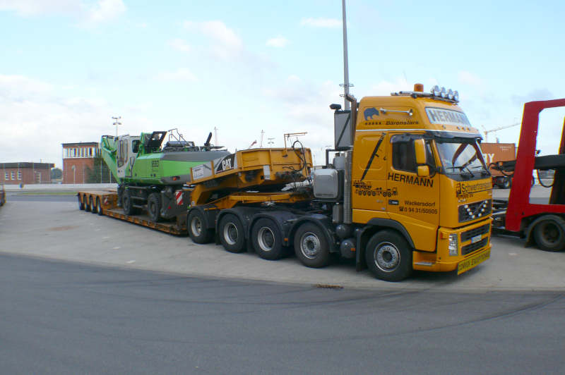 Im August 2008 brachte die Kombination ein Sennebogen Umschlag Gerät zum Osvaldkai, in den Hamburger Hafen