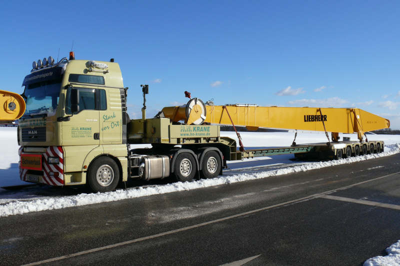 Im März 2010 transportierte H.N. Krane zwei Ausleger für Schiffsladekrane vom Hersteller