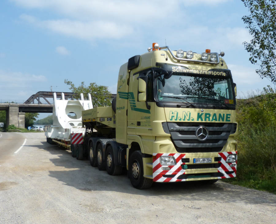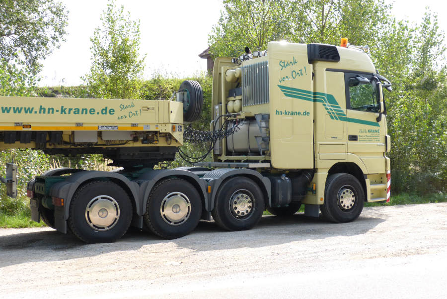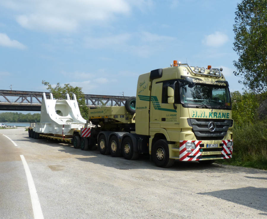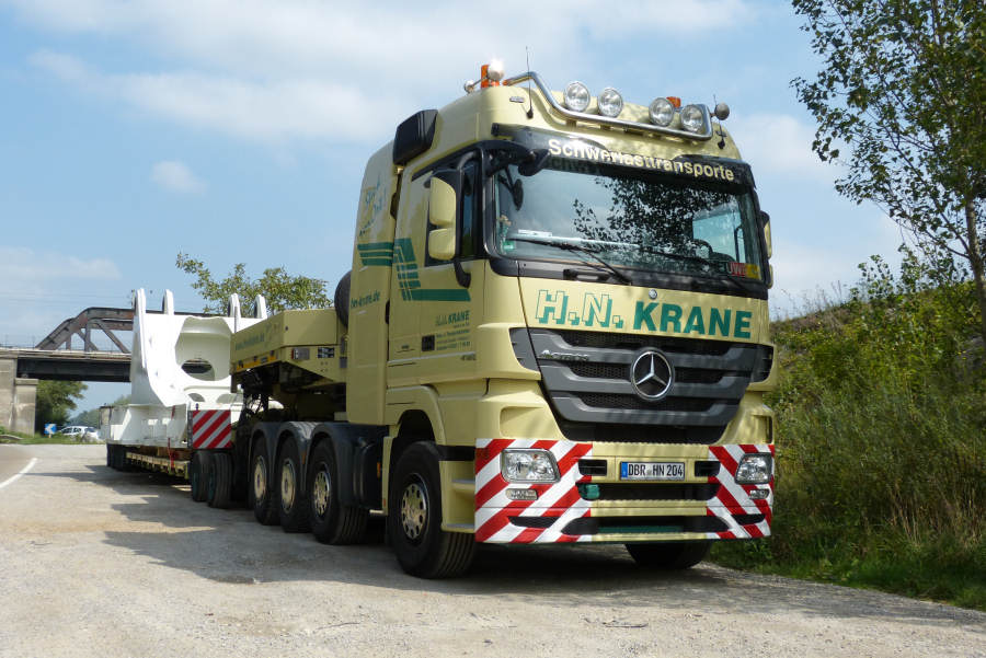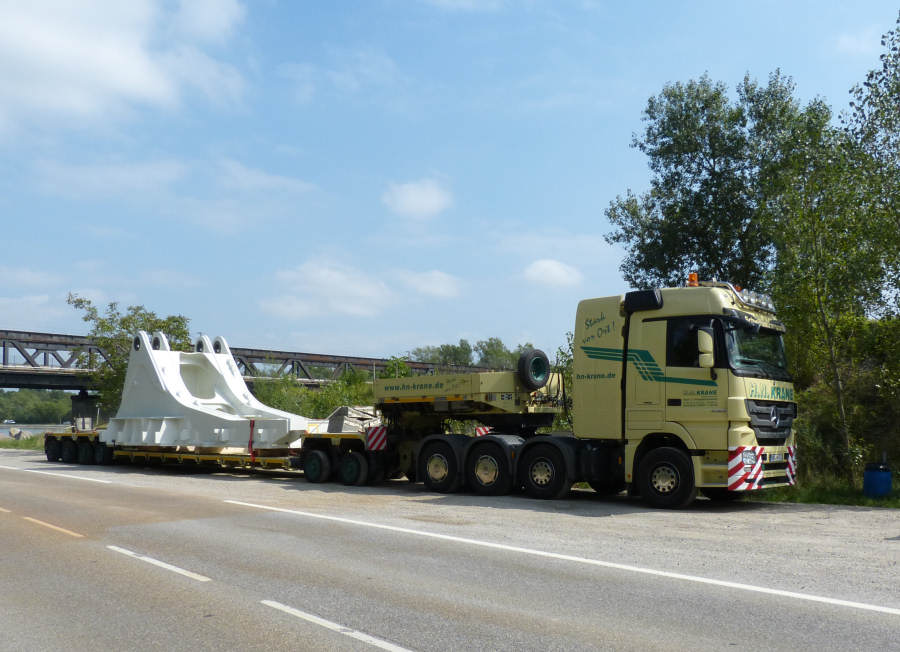 MB 4165 MP 3 mit Goldhofer 2/4 Tieflader und Liebherr Baggerteil