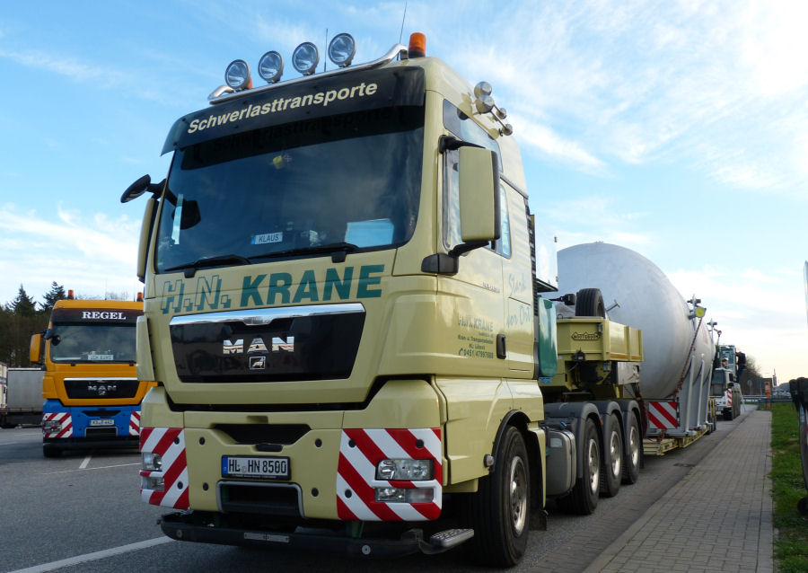 Im März 2014 konnte ich diesen Transport von H.N. Krane auf dem Rasthof Buddikate Ost fotografieren.