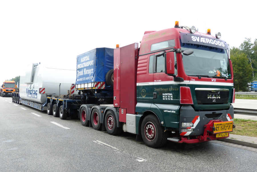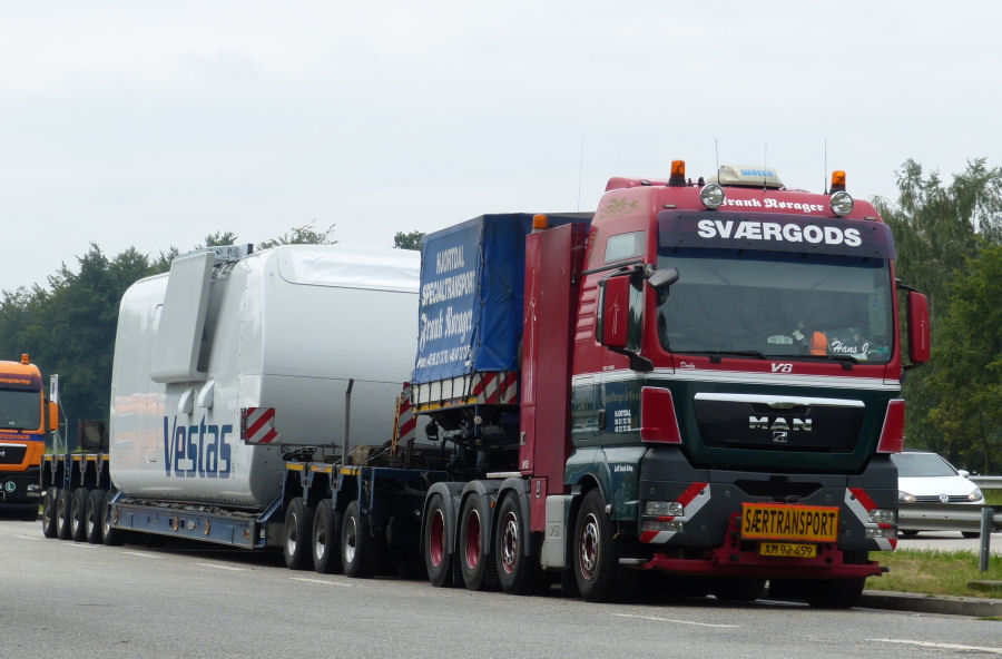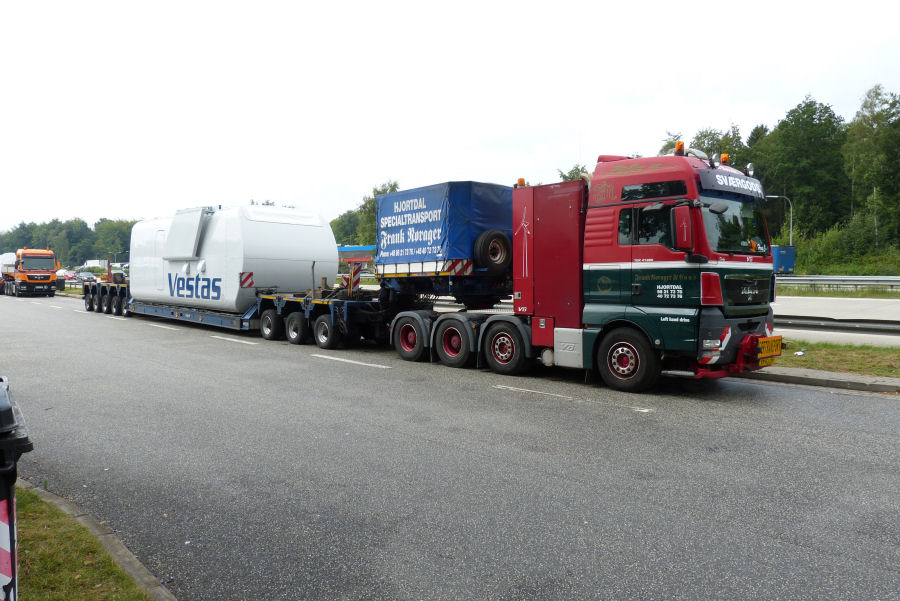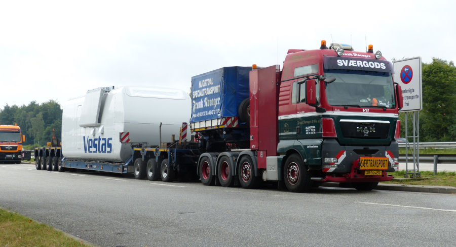 MAN 41.680 TGX und Scheuerle Nooteboom 3/5 Eurocombi Tieflader mit Vestas V 90 Maschinenhaus