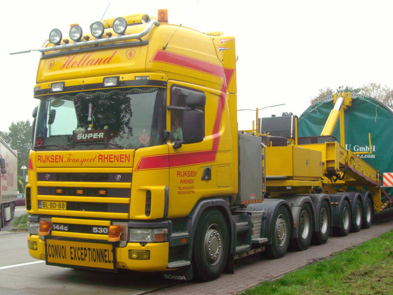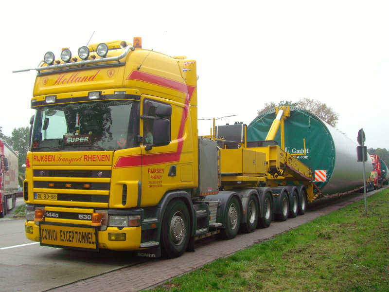 Im Oktober 2007 konnte Günter Eibig diesen Mega Windmilltransporter von Riksen, beladen mit einem Wka Turmteil ablichten
