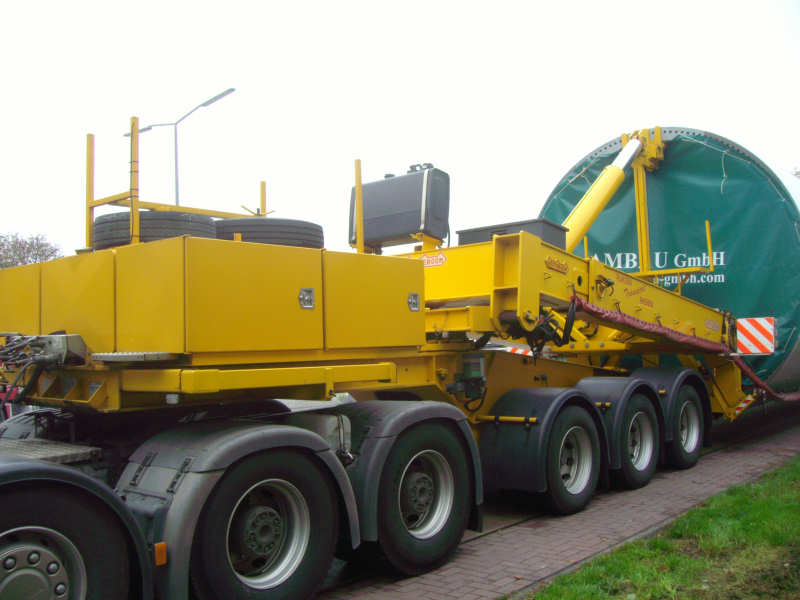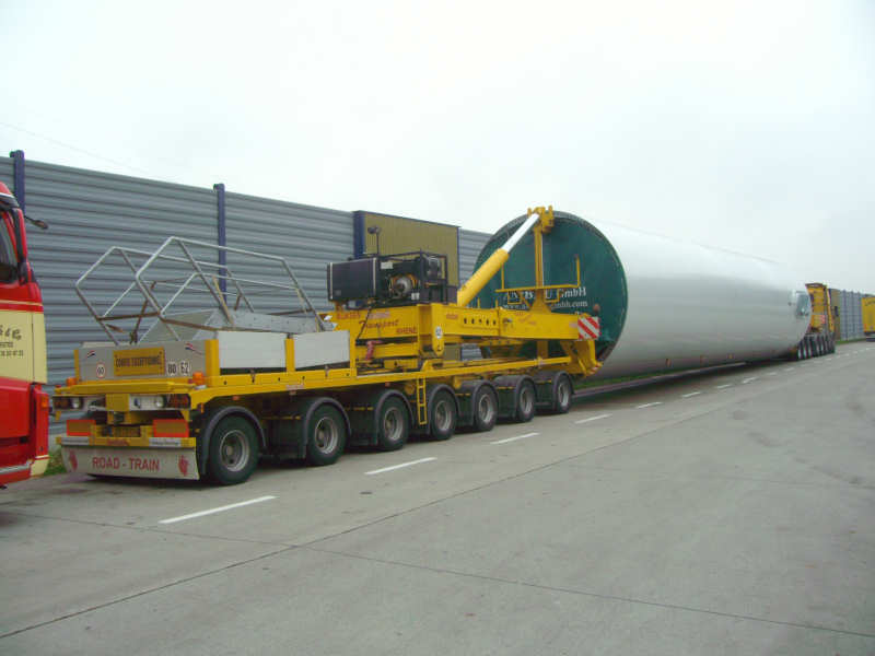mit Mega Windmilltransporter beladen mit einem Wka Turmteil