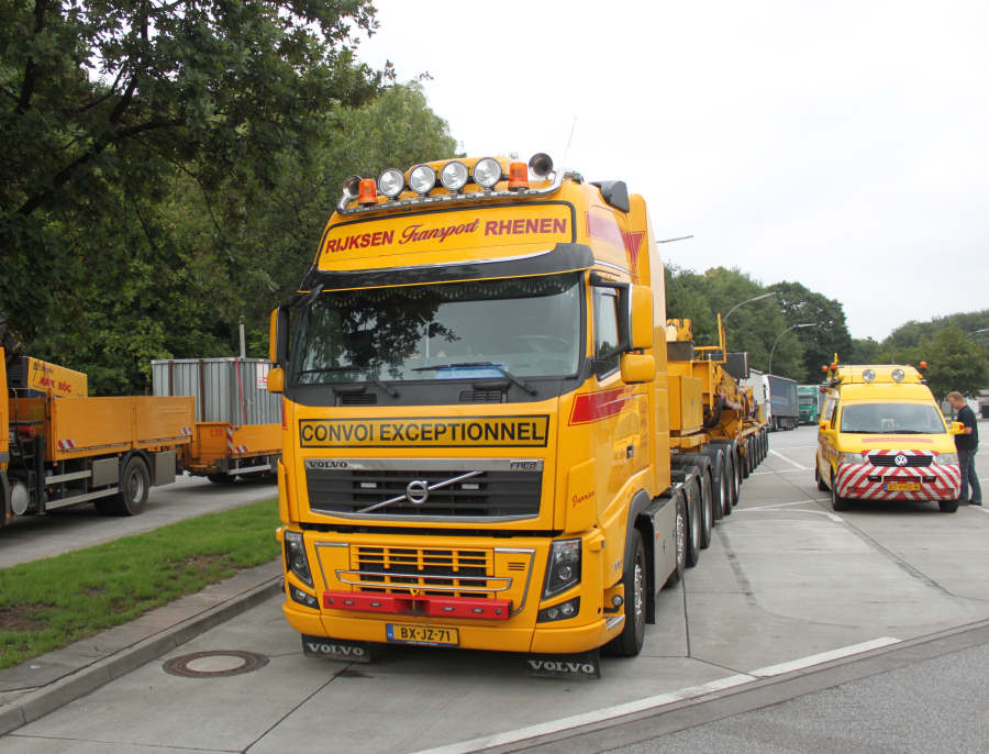 Die Zugmaschine war eine Volvo FH 16 700 die Schwerlastkombination ein Nooteboom 3/7 Mega Windmilltransporter.