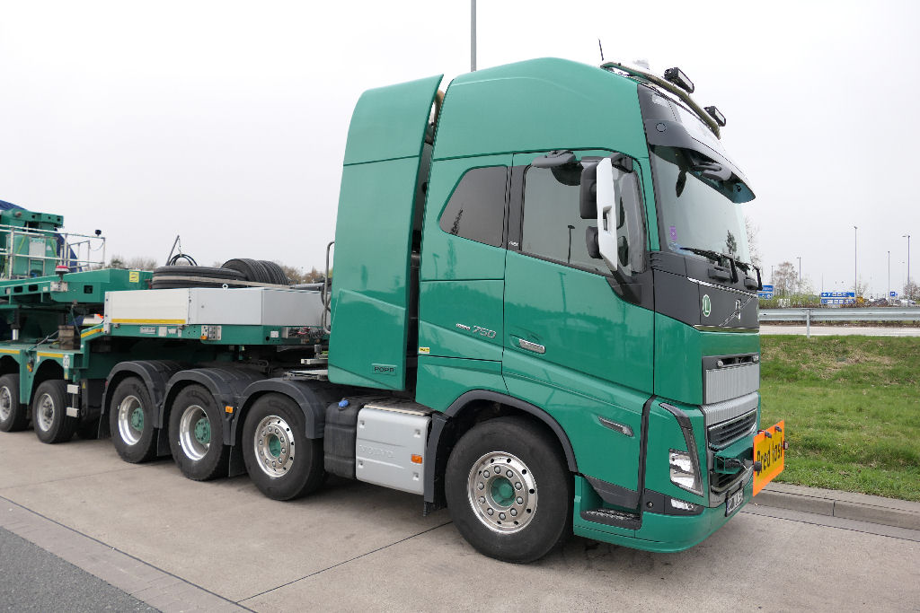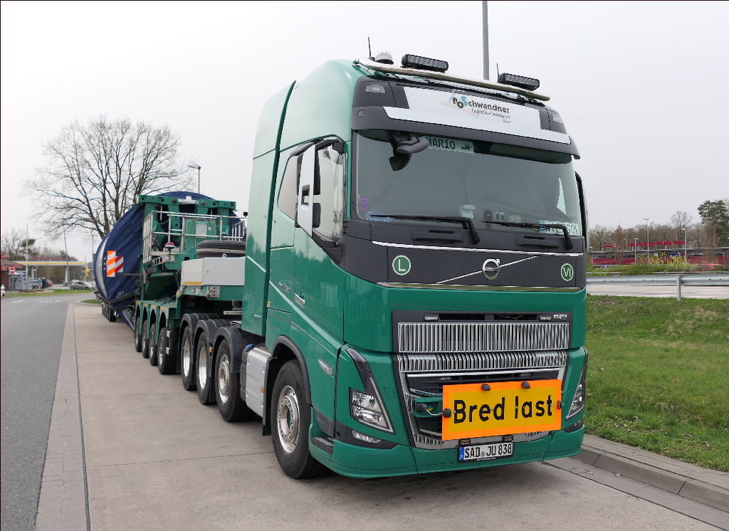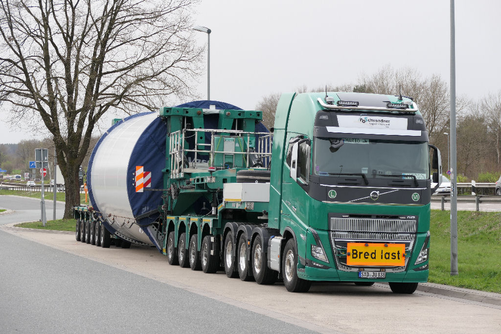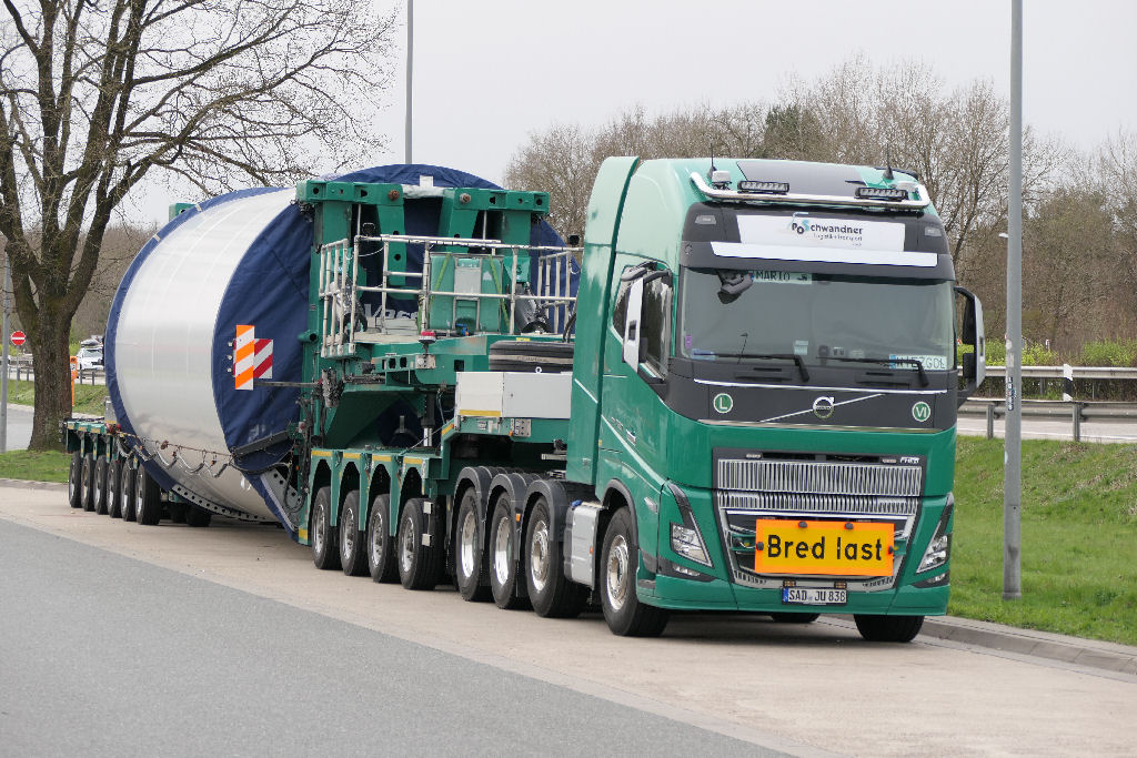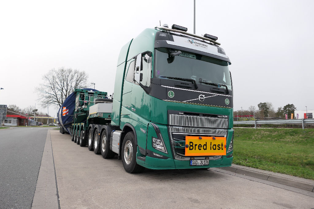 Volvo FH 16 750 8x4 mit Goldhofer RA2-110 Rohradapterkombination und WEA Turmsektion