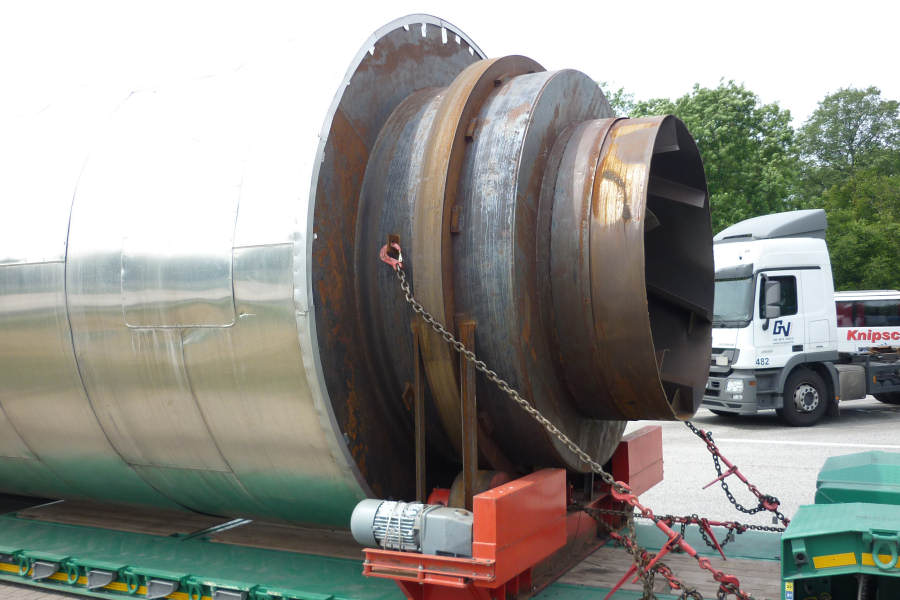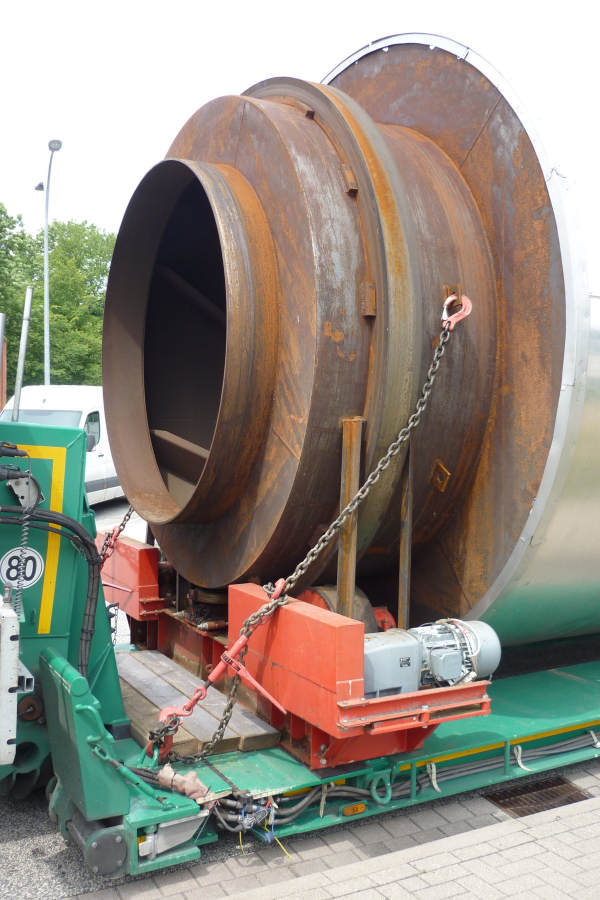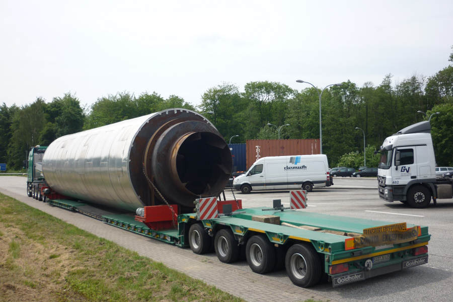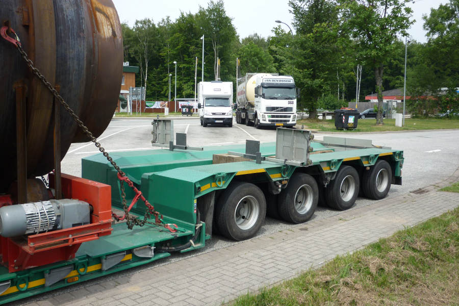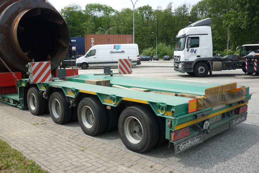 Volvo FH 12 540 mit Goldhofer Tiefbett und Trockentrommel Transport