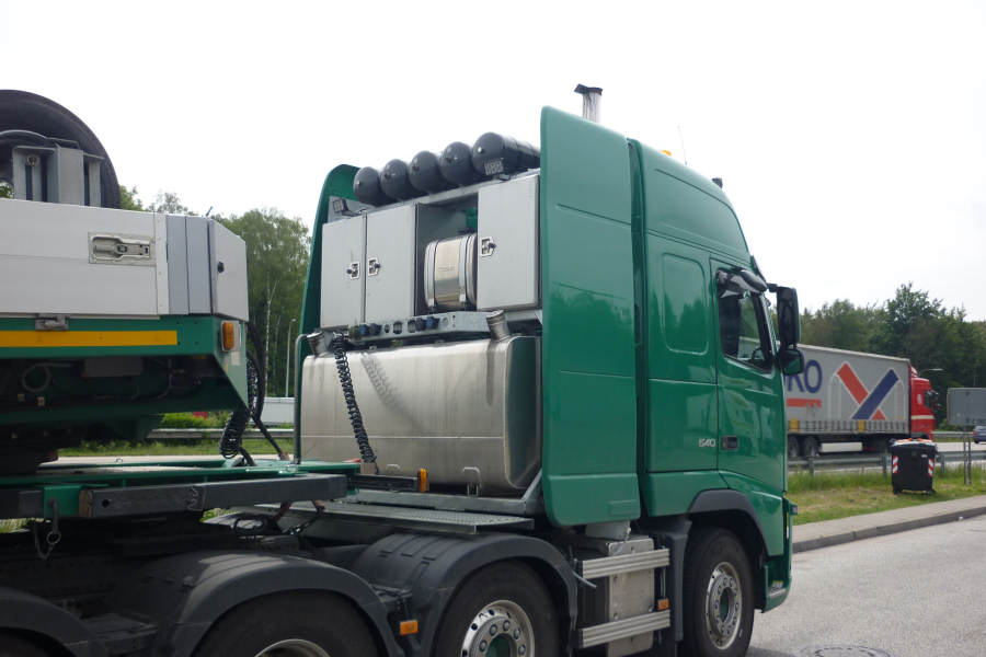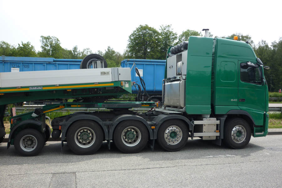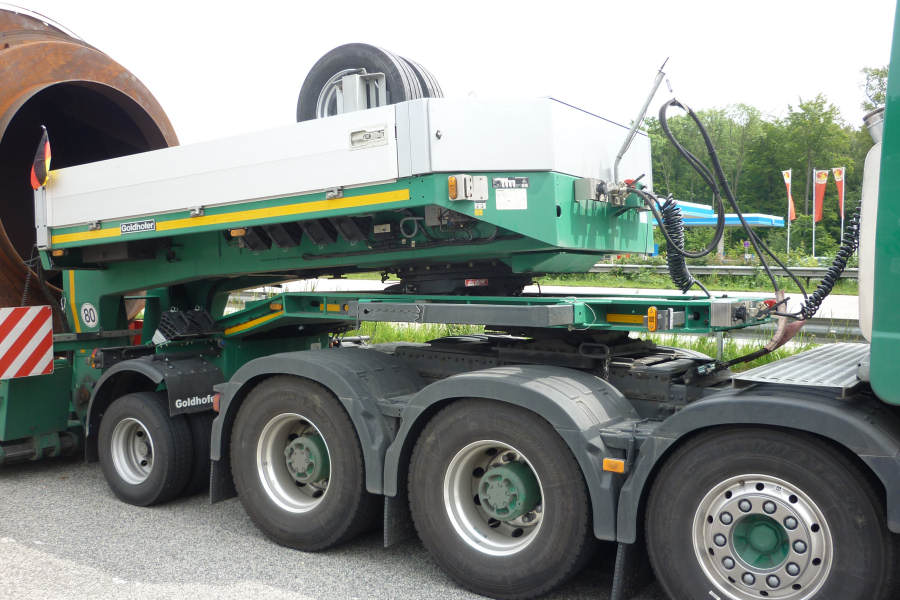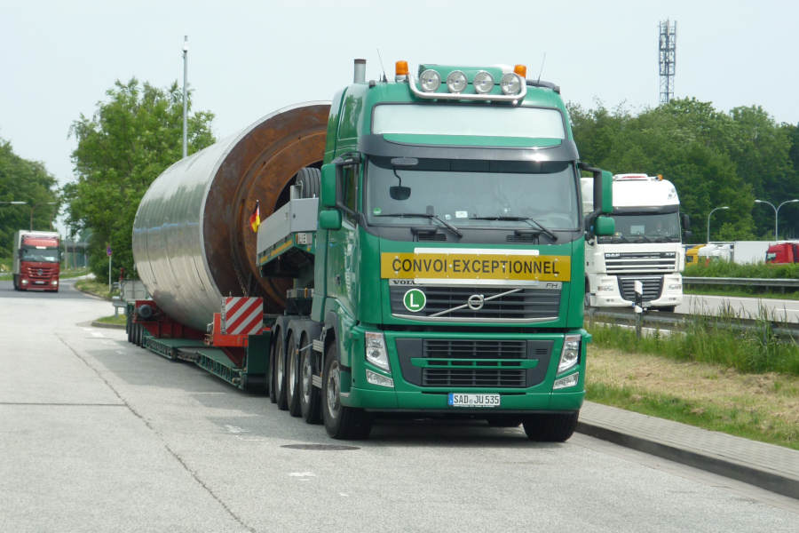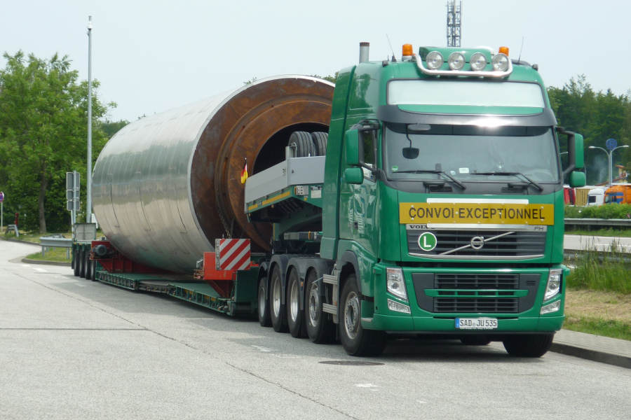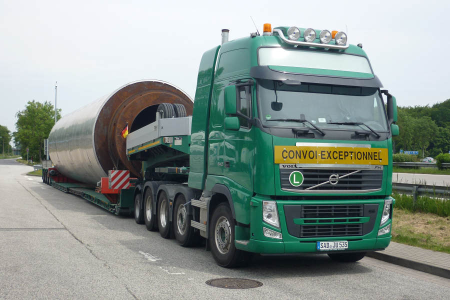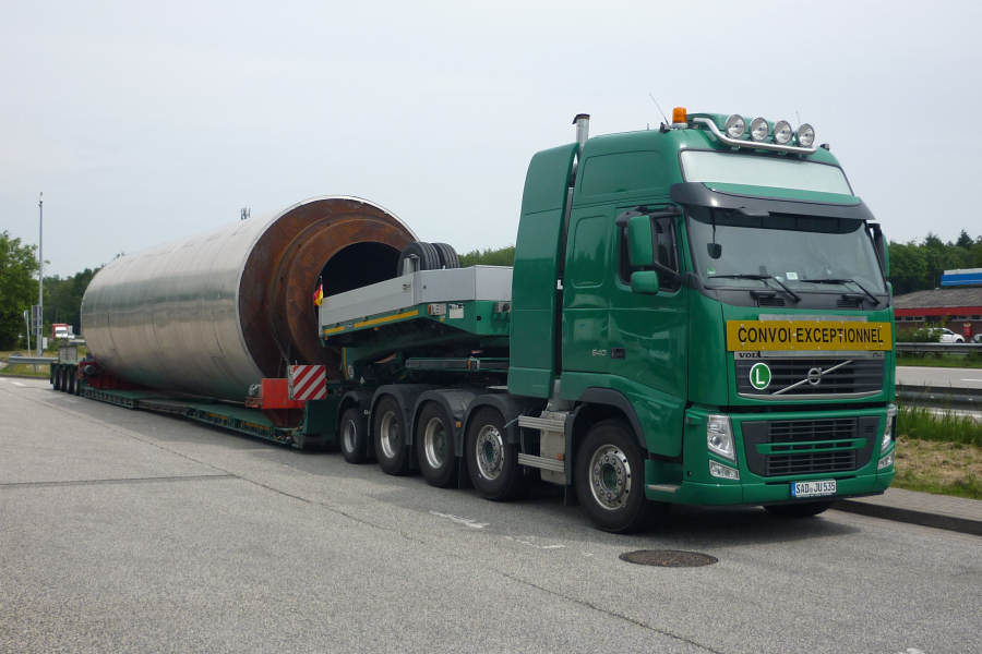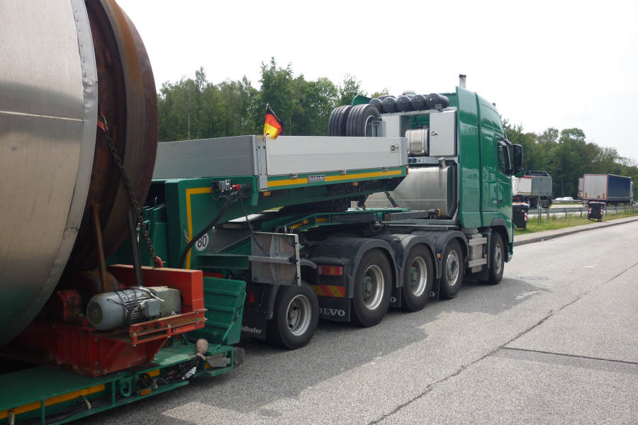 Volvo FH 12 540 mit Goldhofer Tiefbett und Trockentrommel Transport