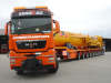 Die Zugmaschine ist eine MAN 41.680 TGX, der Auflieger ein neuartiger Aufliger von Goldhofer.