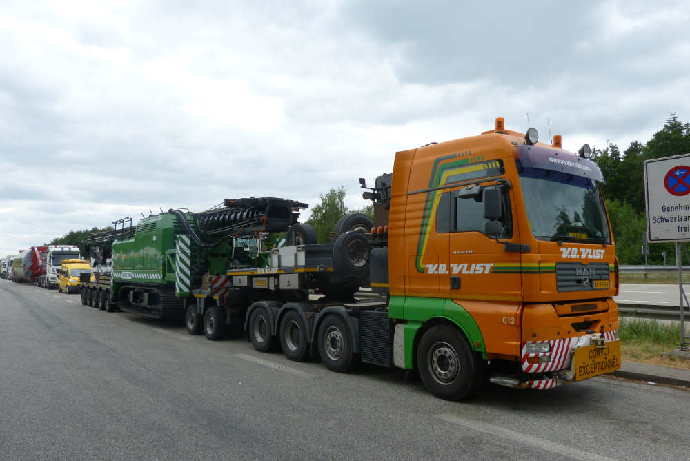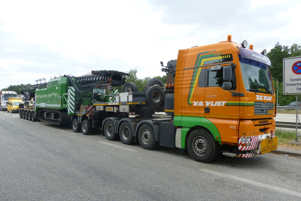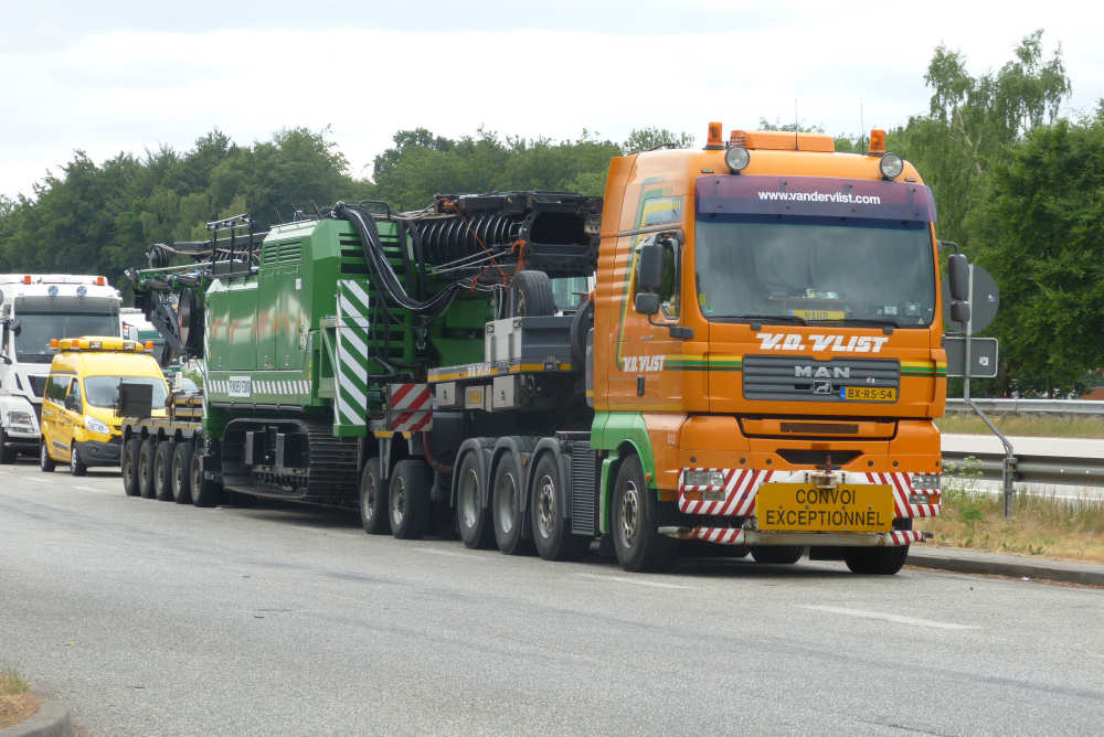 MAN 41.530 TGA mit Nooteboom Euro ICP 2/5 Tieflader und IHC Fundex F 2800 Rammgerät