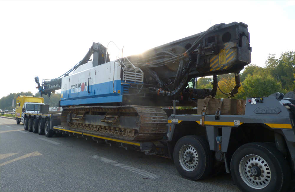 MB 4153 Actros Titan mit Nooteboom Euro ICP 2/5 Tieflader und Rammgerät von Terracon BV