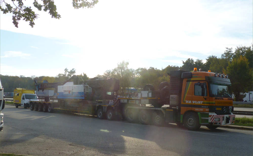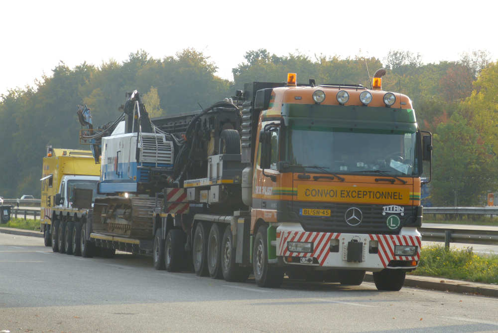 MB 4153 Actros Titan mit Nooteboom Euro ICP 2/5 Tieflader und Rammgerät von Terracon BV