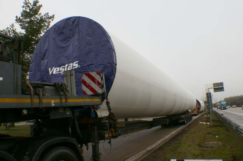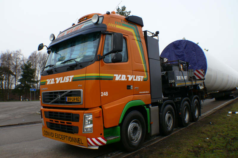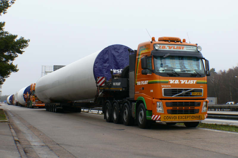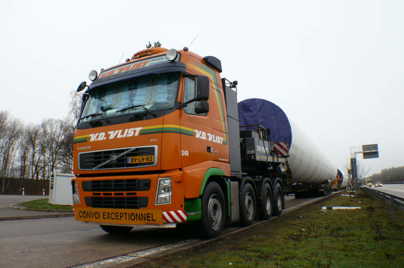 Ende Dezember 2009 waren diese vier Schwertransporte von Van der Vlist, mit Vestas Windenergie Anlagenteilen,