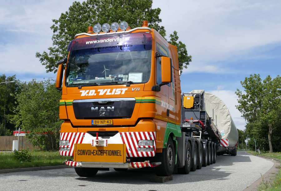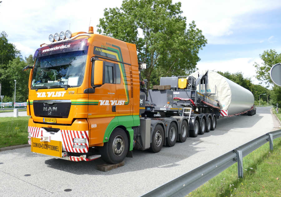 MAN 41.540 + 41.680 TGX mit Mega Windmilltransportern und Siemens Turmteilen