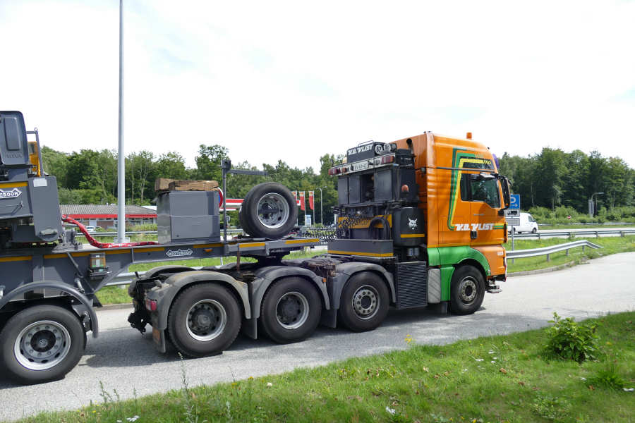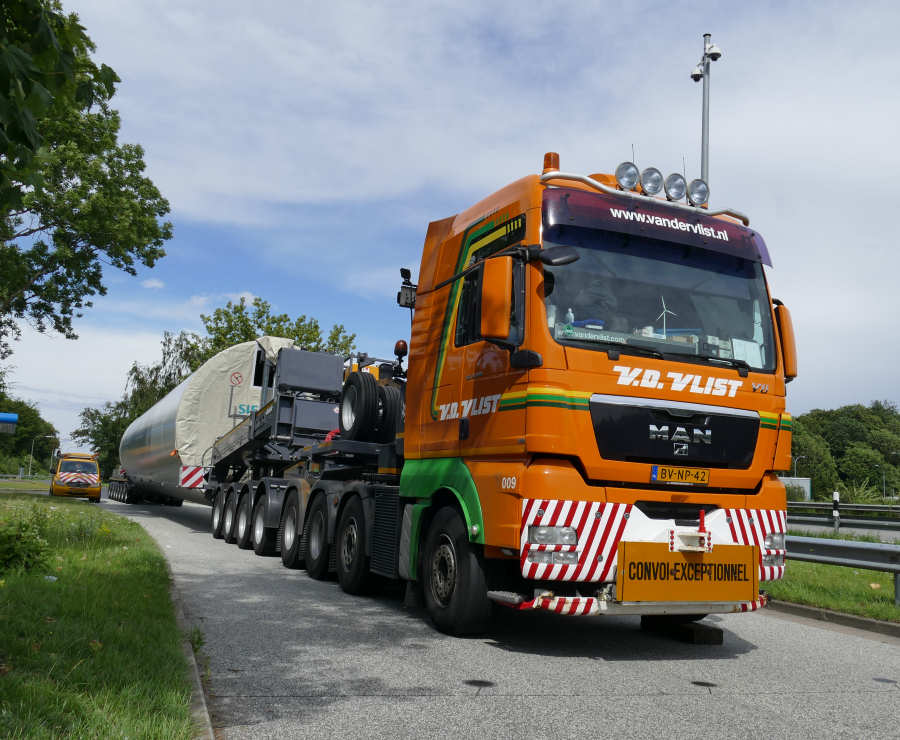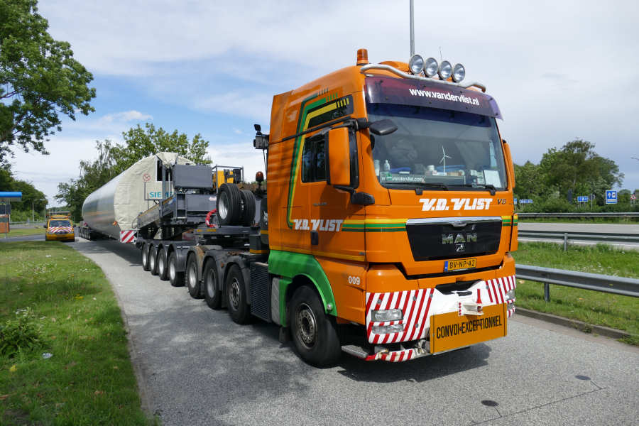 MAN 41.540 + 41.680 TGX mit Mega Windmilltransportern und Siemens Turmteilen
