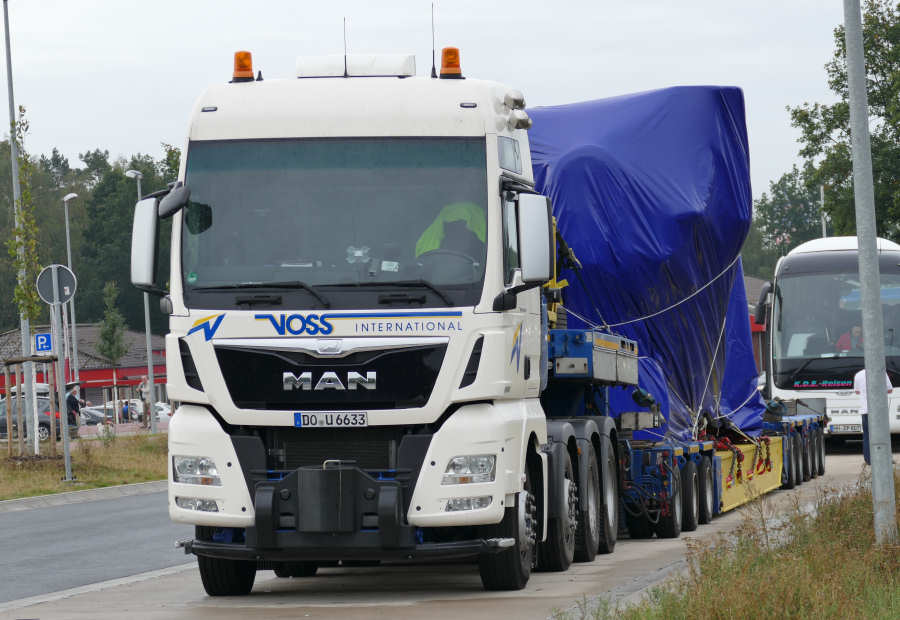 Im Oktober 2016 konnte ich den (meinen) ersten Transport mit einer neuen Euro 6 MAN Zugmaschine von Voss fotografieren
