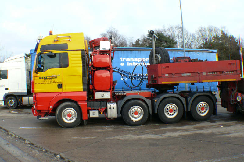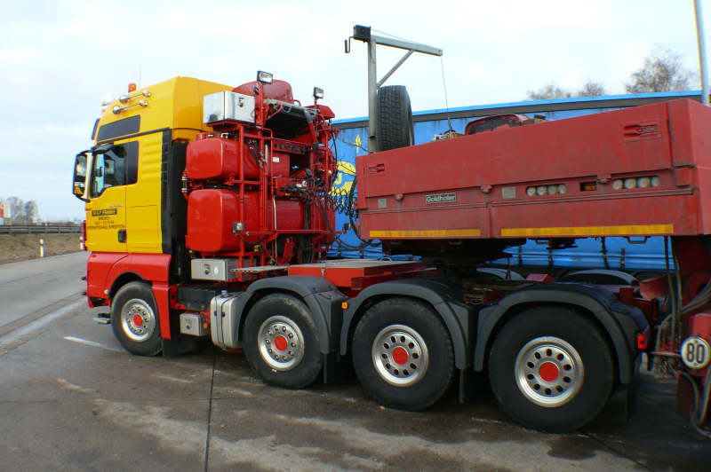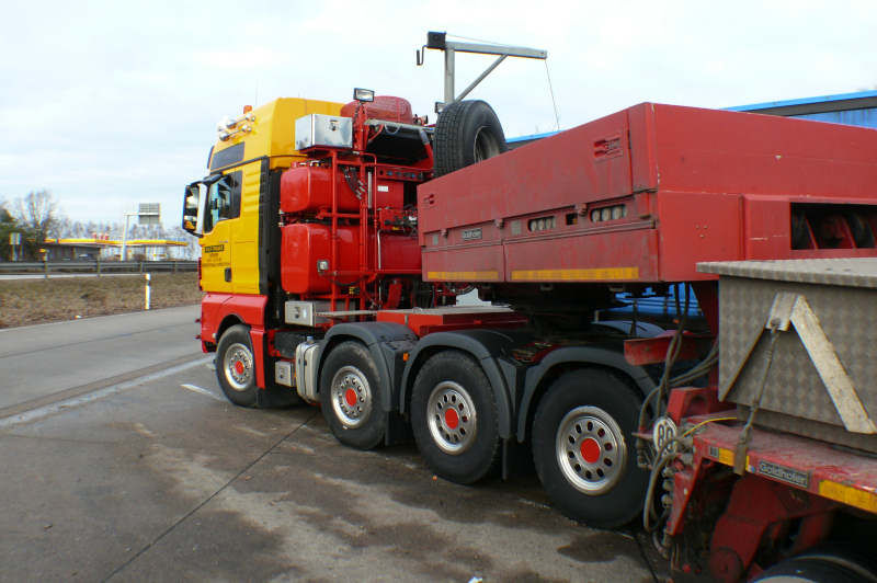 Ende Januar 2009 stand dieser Transport, geführt von einem MAN 41.680 TGX, auf dem Rasthof
