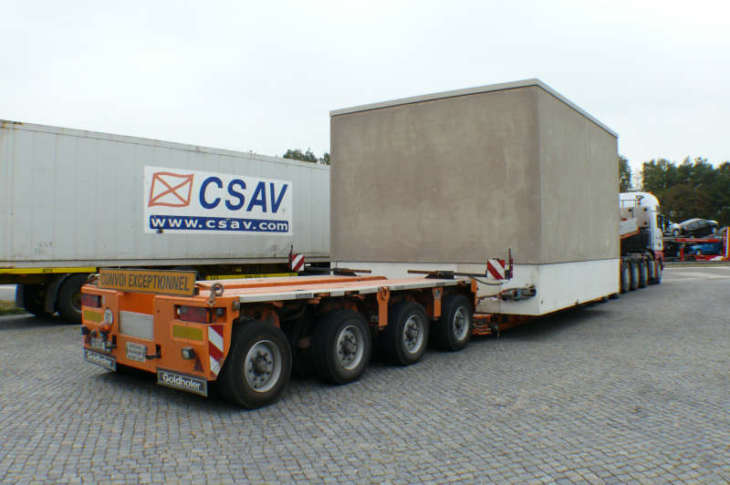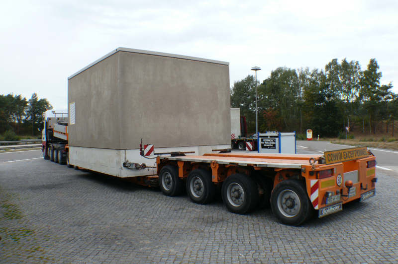 Bei der Ladung handelte es ich um den Rohbau einer Trafoststion aus Beton, Gewicht 42 t.