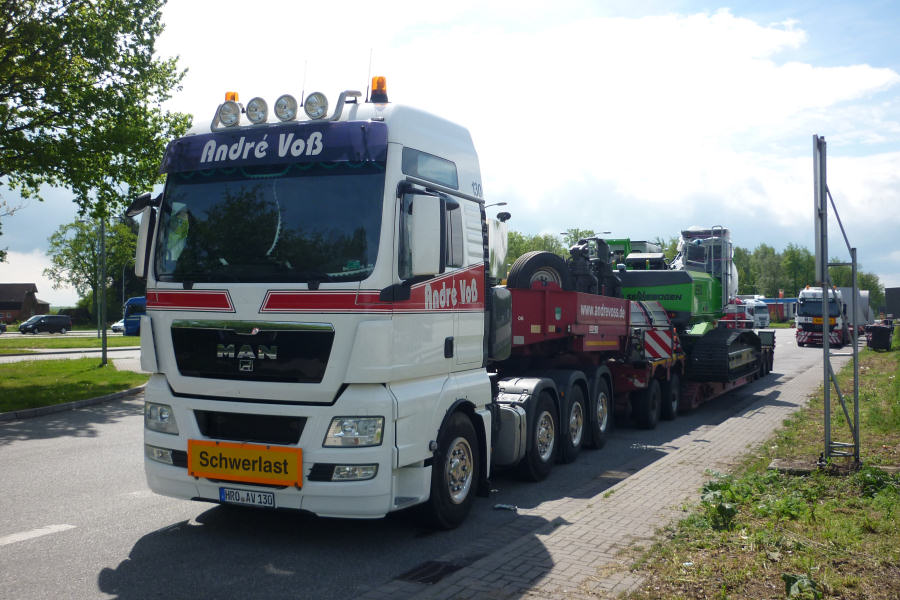 Der Schwerlastzug bestand aus MAN 41.540 TGX und ESGE 2/4 Tieflade Kombination.
