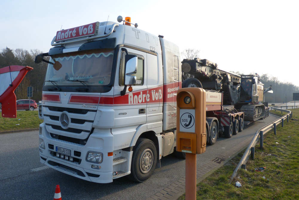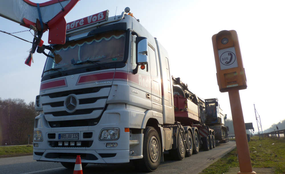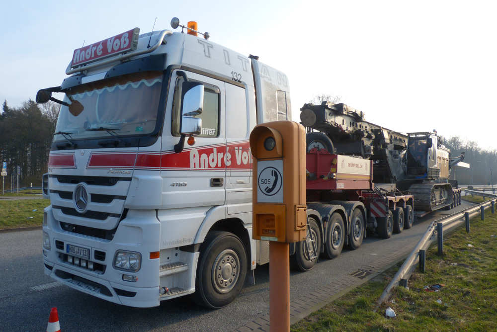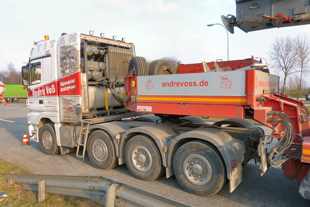 Die Schwerlastkombination bestand aus MB 4165 MP 3 Titan und Faymonville 3/5 Variomax Tieflader mit