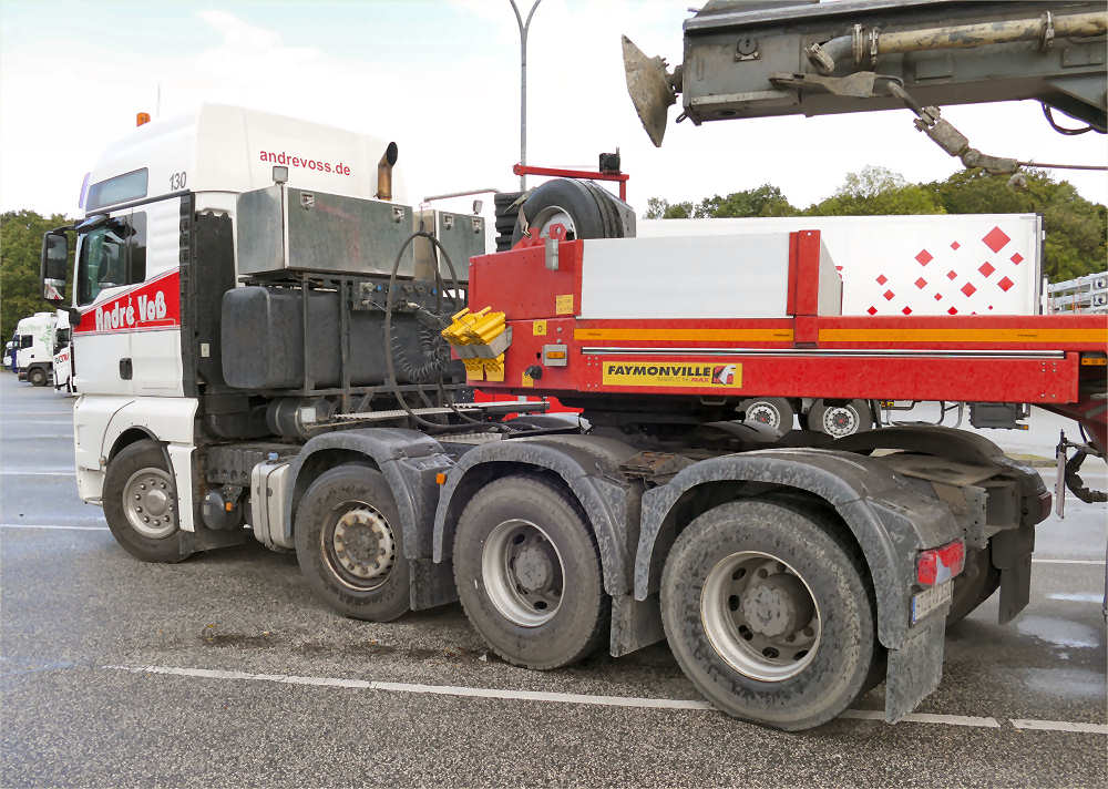 Die Schwerlastkombination bestand aus MAN 41.540 TGX 8x4 mit Faymonville 2/4 Tieflader.