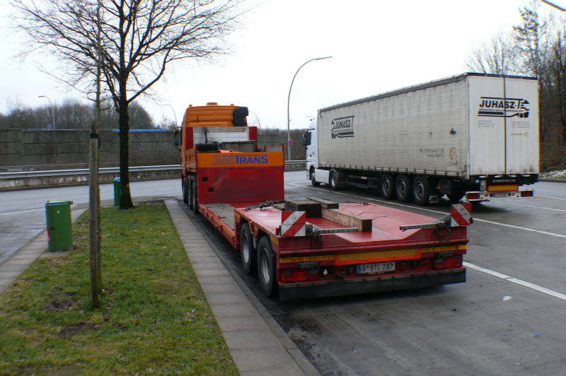 Leer Transport auf dem Rasthof Harburger Berge  Ost, A7, im Februar 2009.