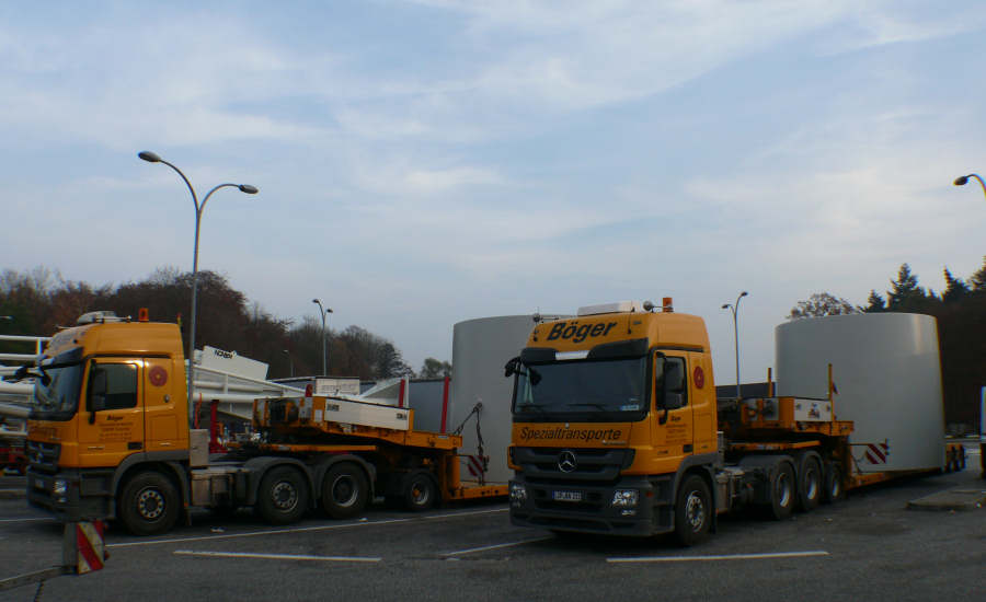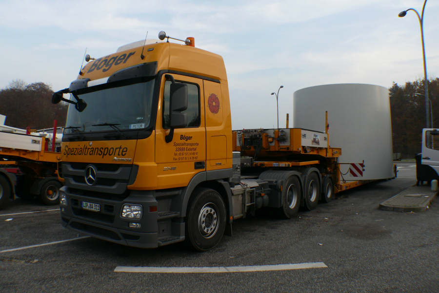 Im November 2011 stand die Firma Böger Spezialtransporte mit zwei Transportkombinationen auf der Raststätte Buddikate an der A 1
