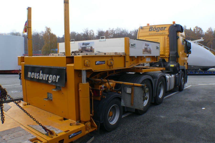 Bei den Zugmaschinen handelte es sich um MB 2548 MP 3 6x2 und MB 2748 MP3 6x4, mit jeweils gleicher Tieflader Kombination