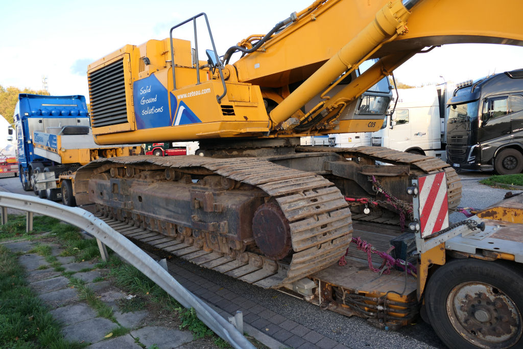 Hier wurde der Bagger nur mit dem Monoblockausleger transportiert, die restliche Ausrüstung