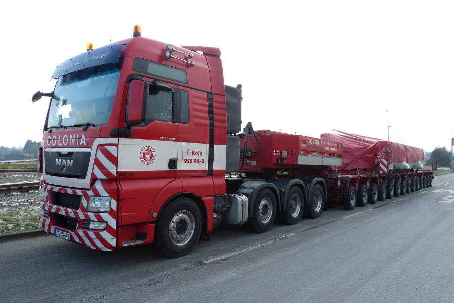 Die Schwerlastkombination bestand aus MAN 41.540 TGX und 14achs Goldhofer THP/ET Sattelroller.
