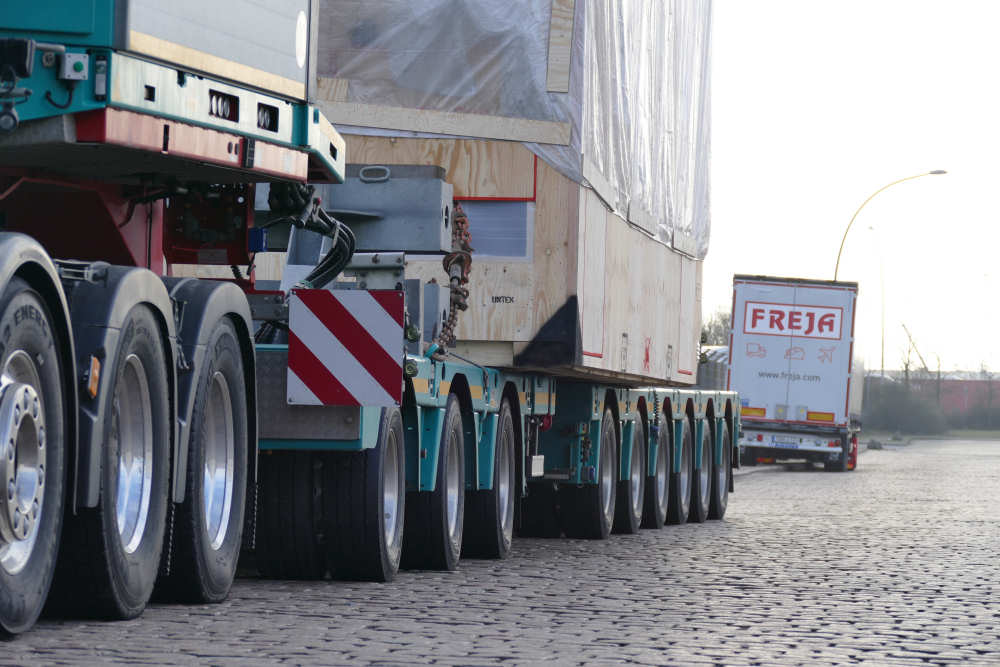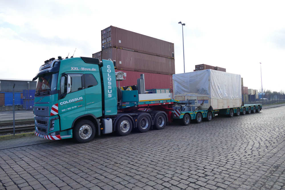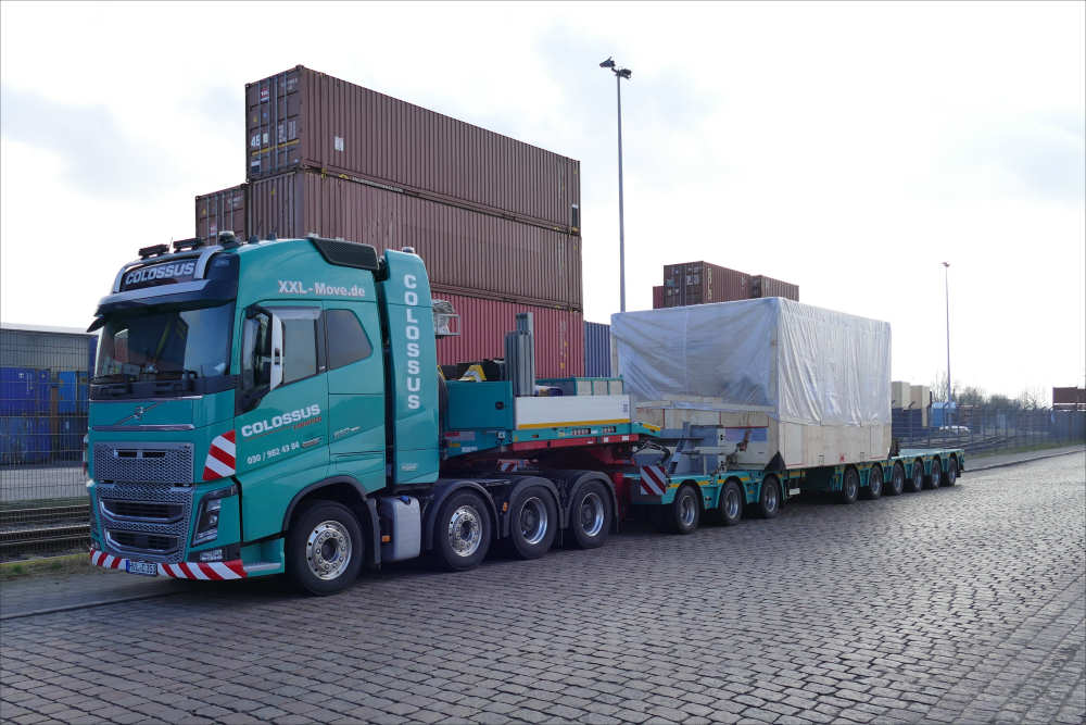 Es wurde eine 75 t schwere Maschinenkiste für den See Export angeliefert.