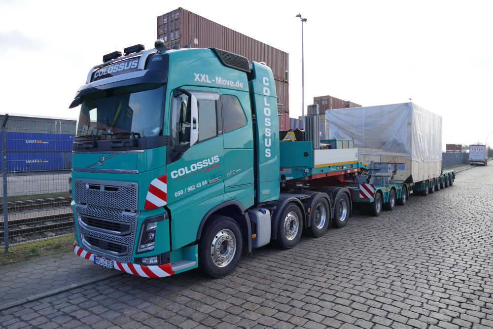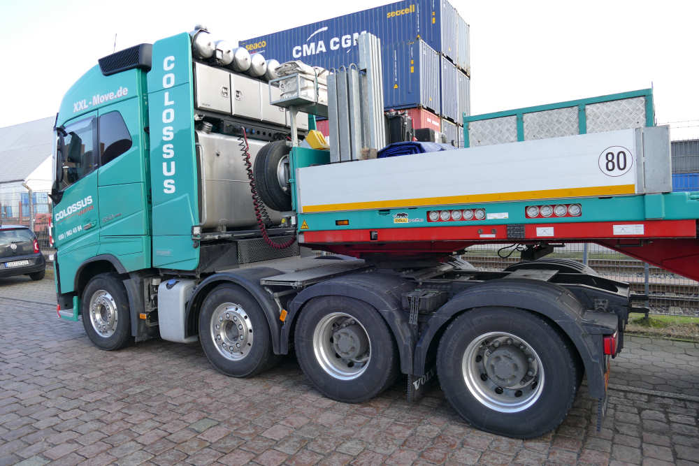 Die Schwerlastkombination bestand aus Volvo FH 4 650 8x4 mit Doll Panther 3-6 Schwerlast Semitieflader.