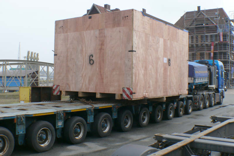Transport einer Maschinenkiste