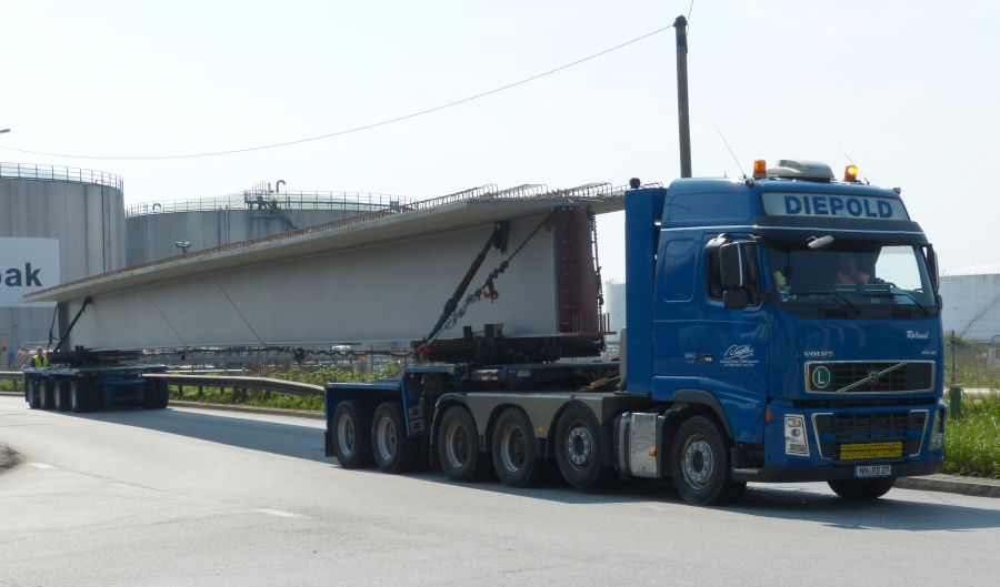 Volvo FH 16 660, 8x4, mit Verbundbinder auf Doll Nachläuferkombination