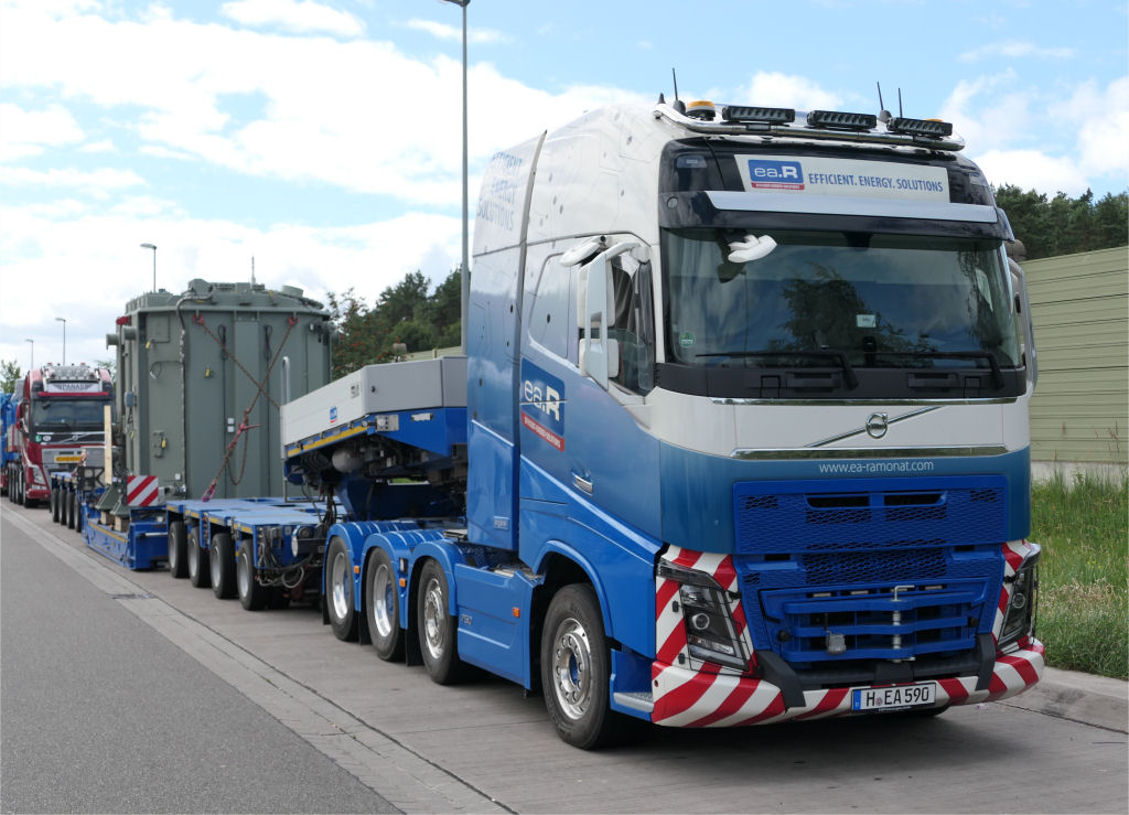 Elektroanlagen Ramonat Volvo FH 16750 mit Trafotransport