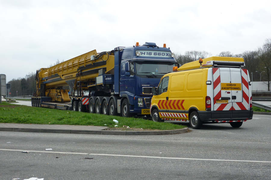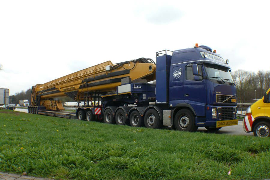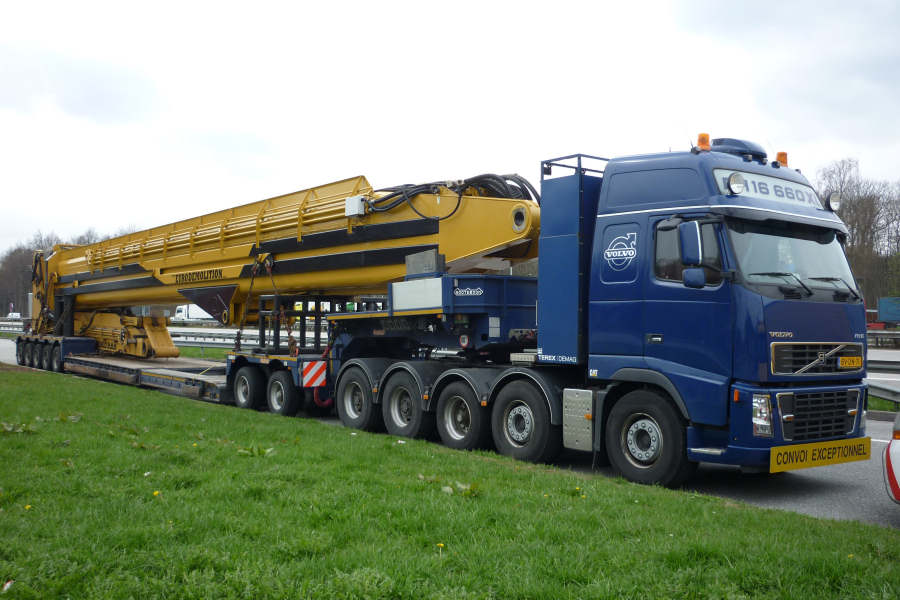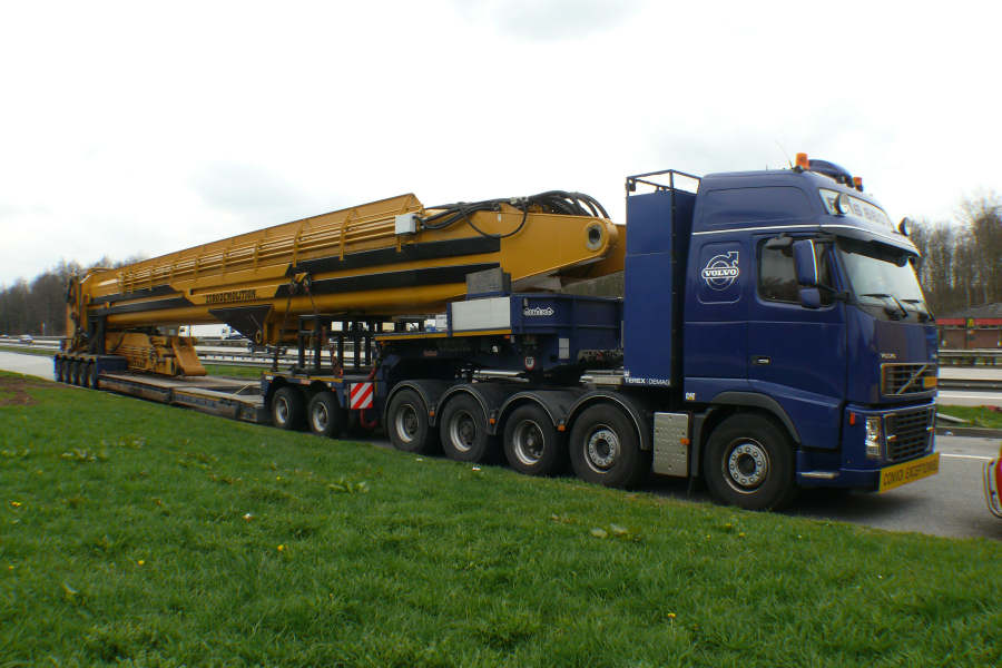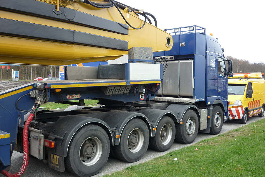 Volvo FH 16 660 XL 10x4 mit Nooteboom 2/5 Kombination Transport CAT 5110 HRD 88 Ausleger