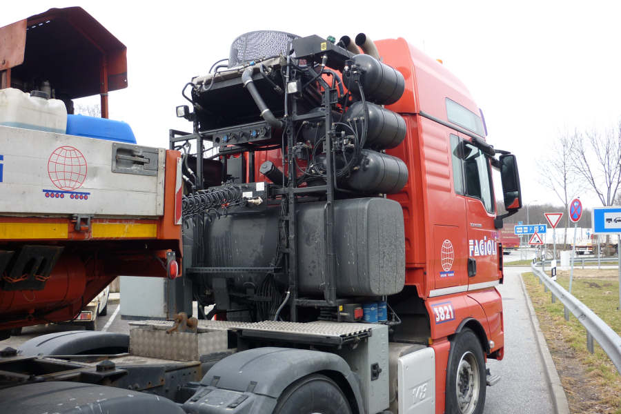 MAN 41.680 TGX , Transport eines Rammengrundgerätes