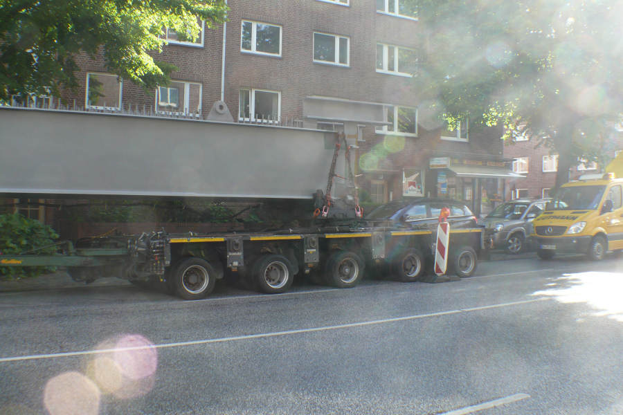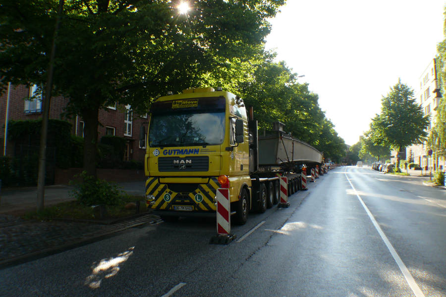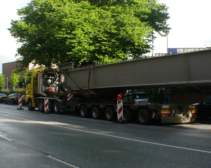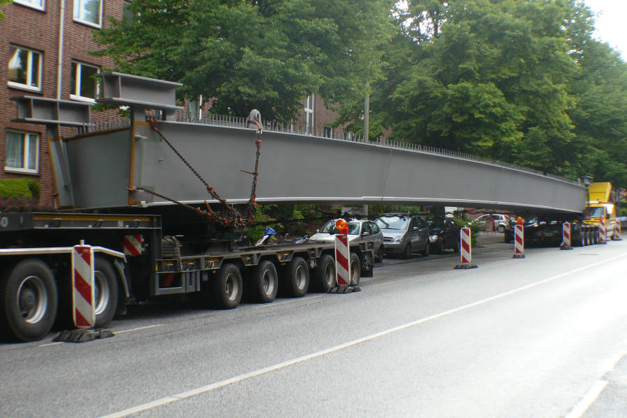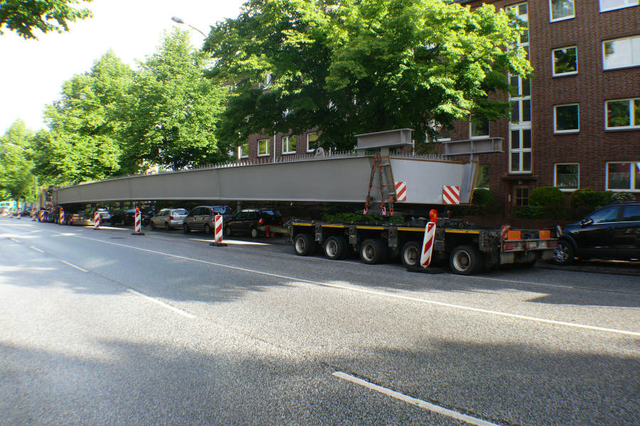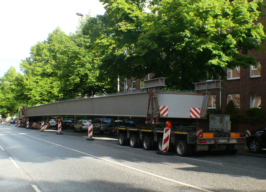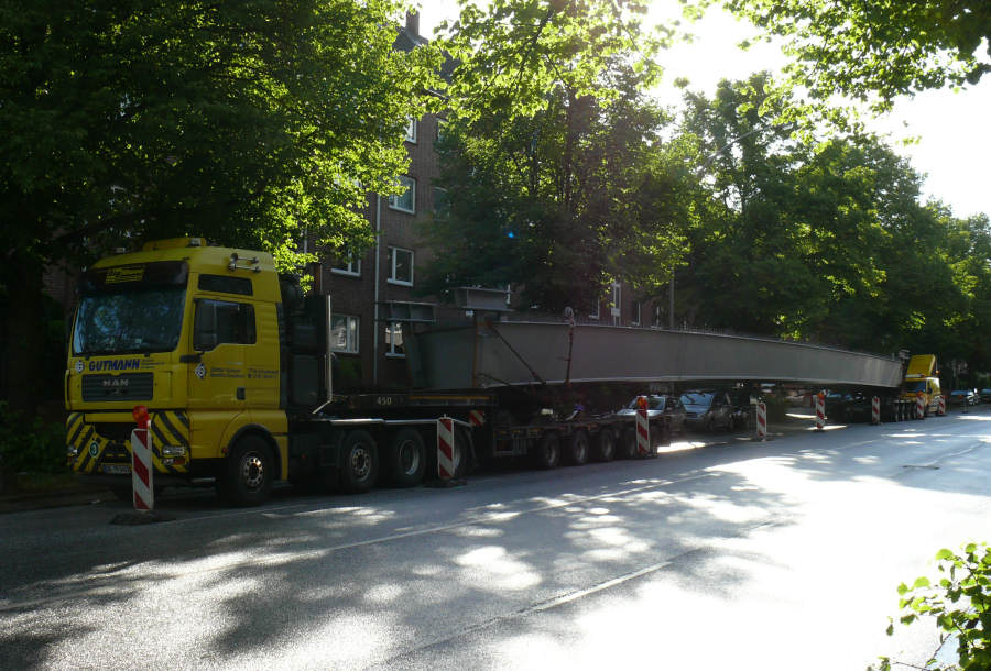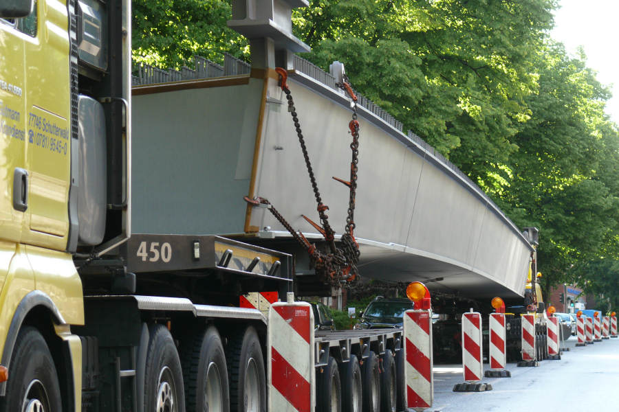 Anfang Juni 2012 wurden drei Stahlbinder für die Alsterbrücke an der Deelböge in HH Alsterdorf