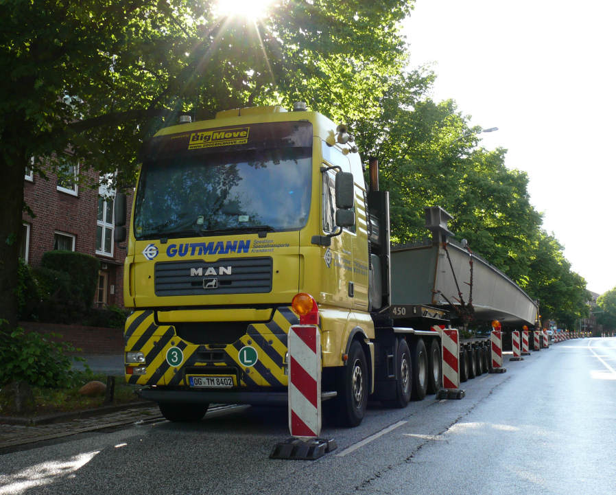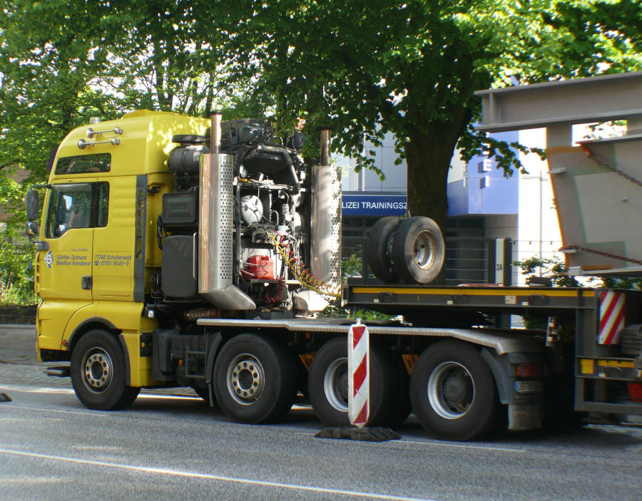 Der Transport bestand aus der MAN 41.660 TGA fünfachsigen Goldhofer Semi Tieflader