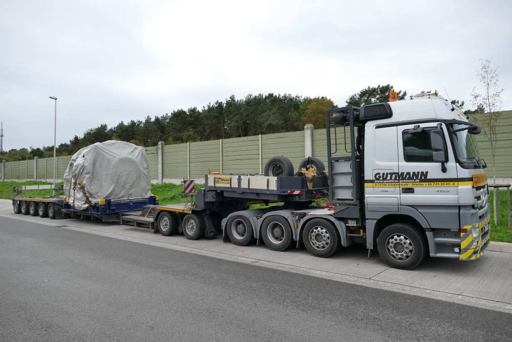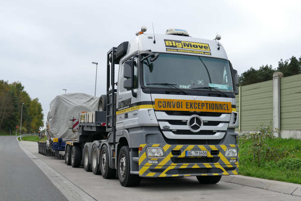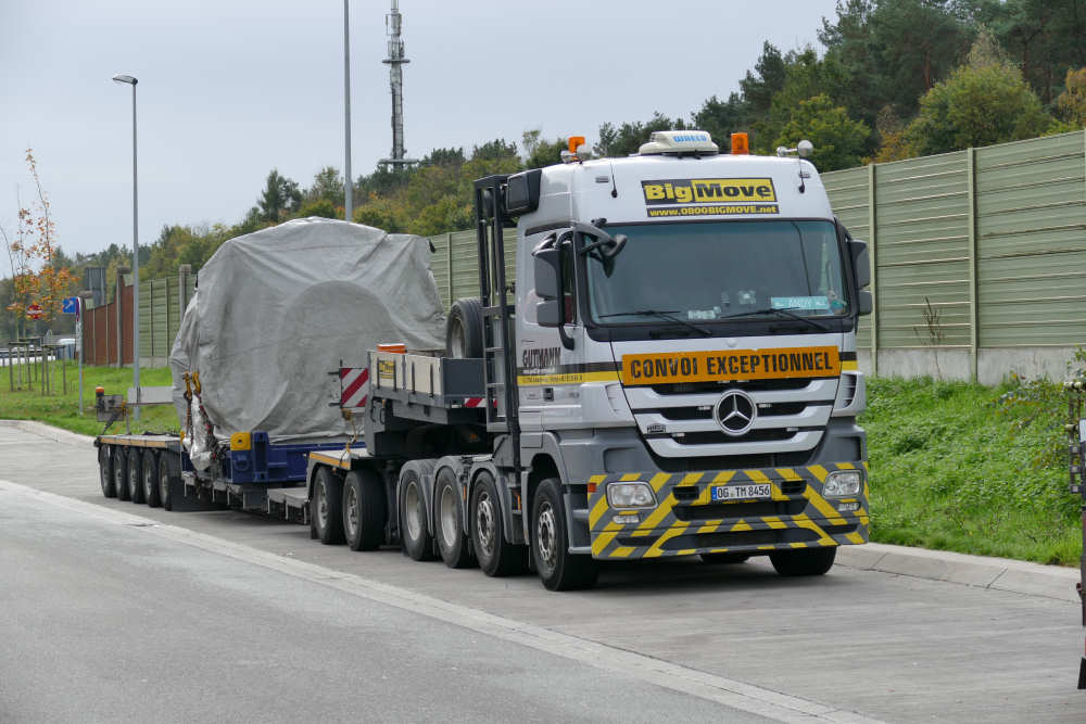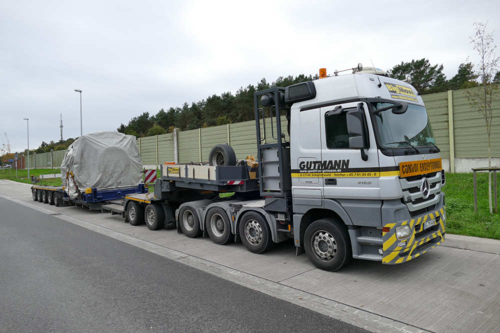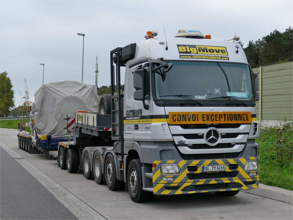 MB 4160 MP 3 Titan mit Scheuerle Nicolas 2/5 Tieflader und WEA Getriebe Transport