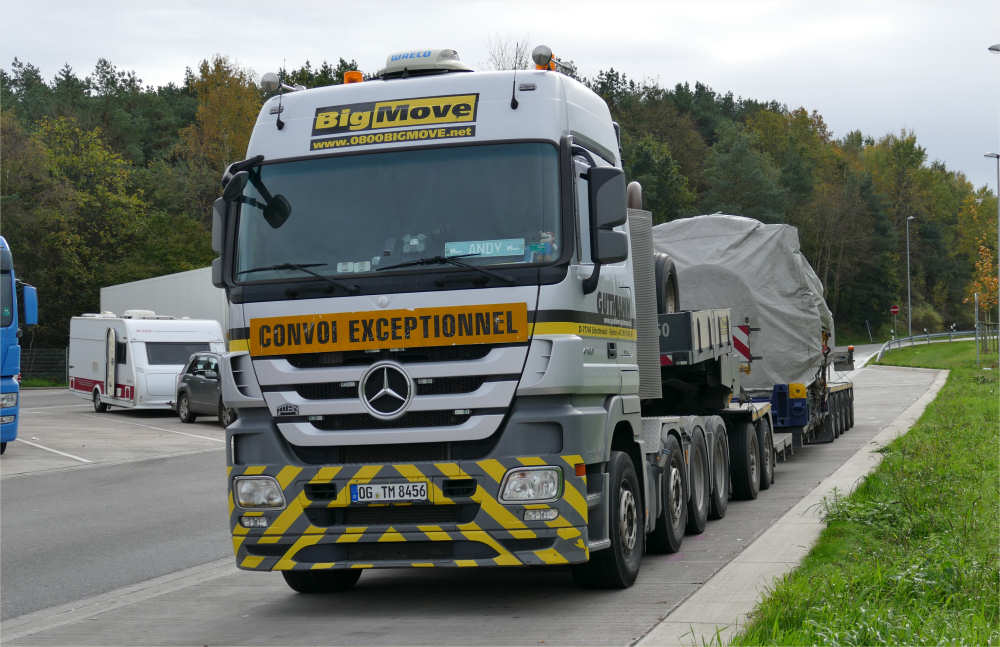 Die Schwerlastkombination bestand aus MB 4160 MP 3 Titan mit Scheuerle Nicolas 2/5 Tieflader.