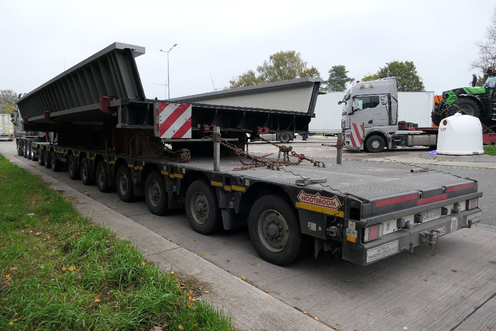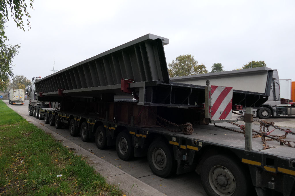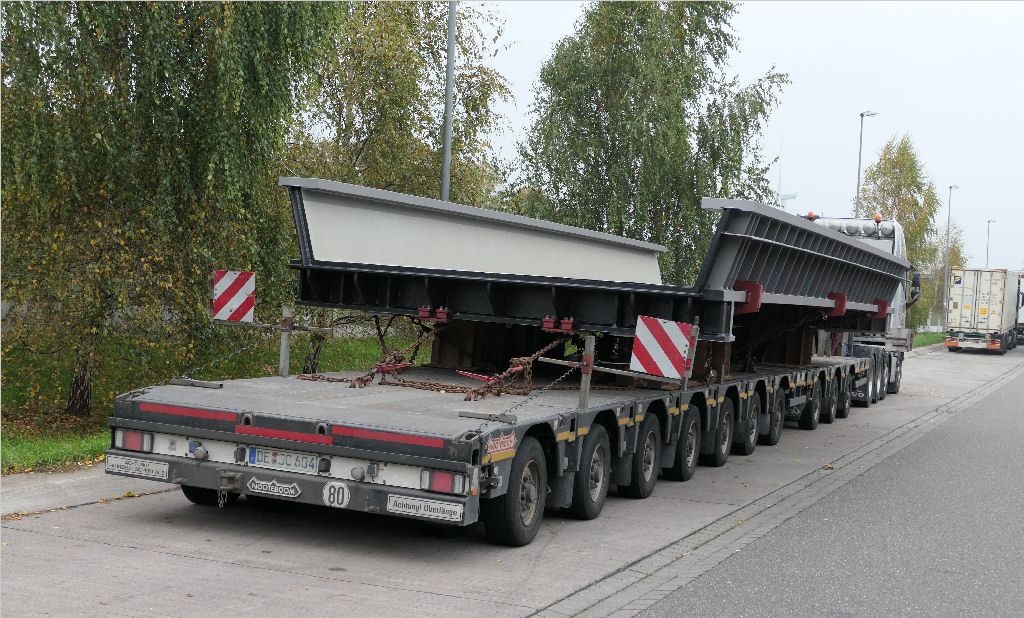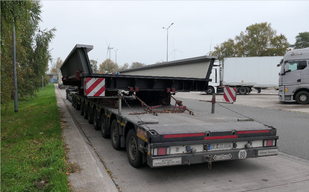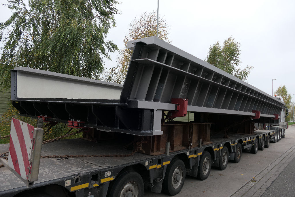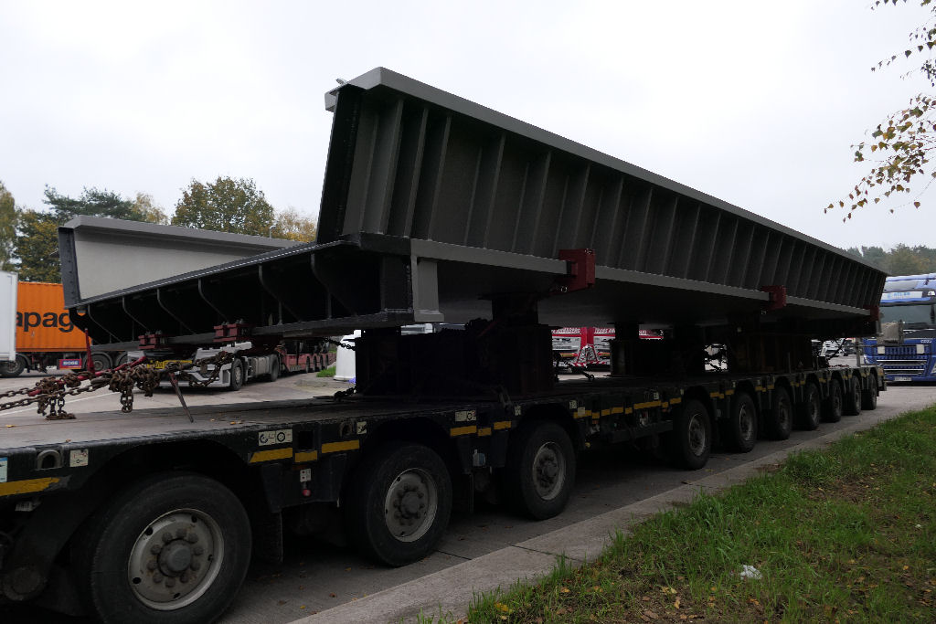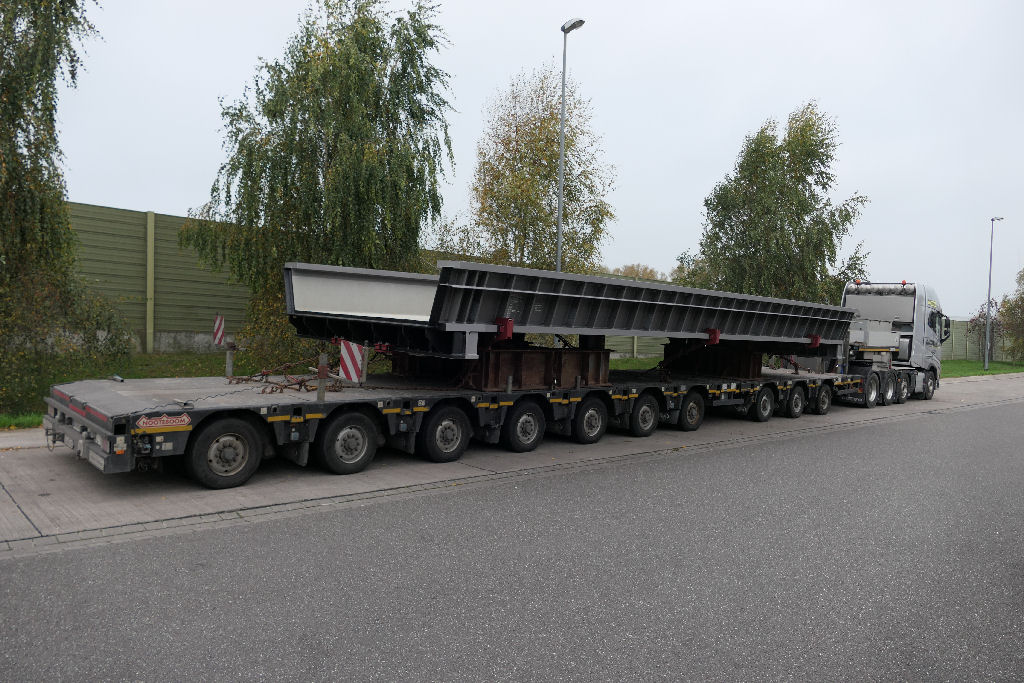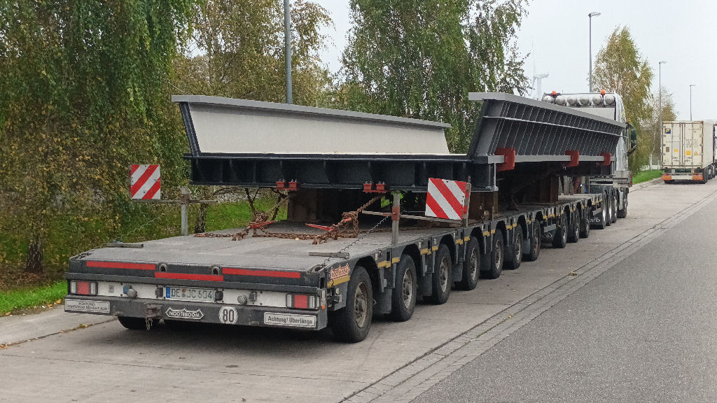 Volvo FH 05 750 8x4 mit Eisenbahnbrücke für eine Baustelle in Schleswig Holstein