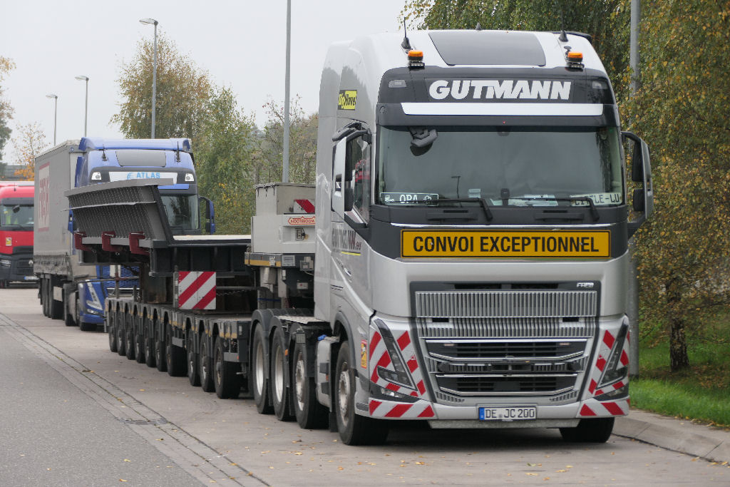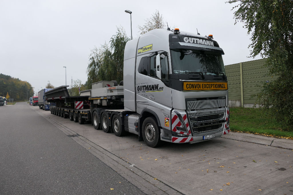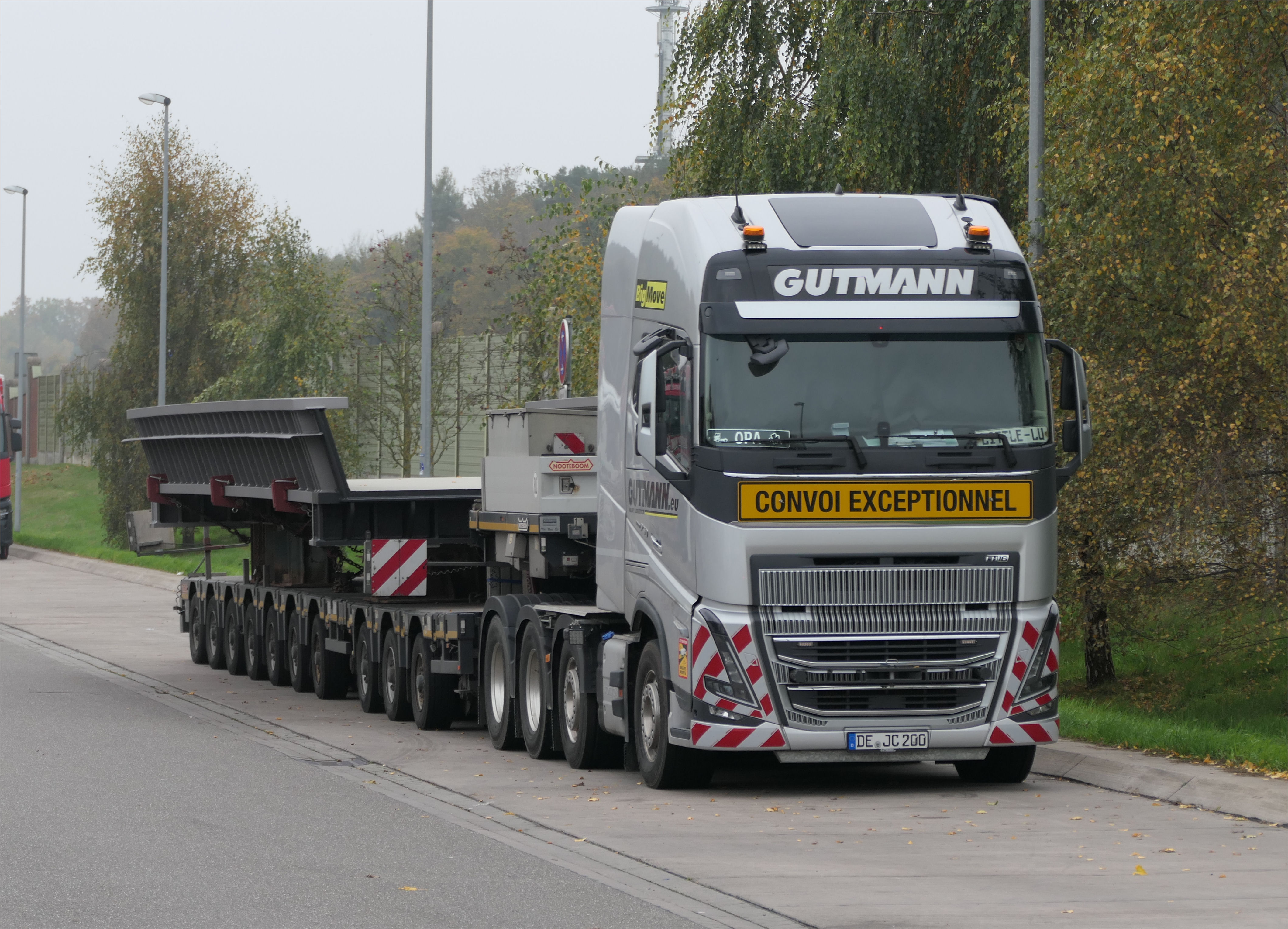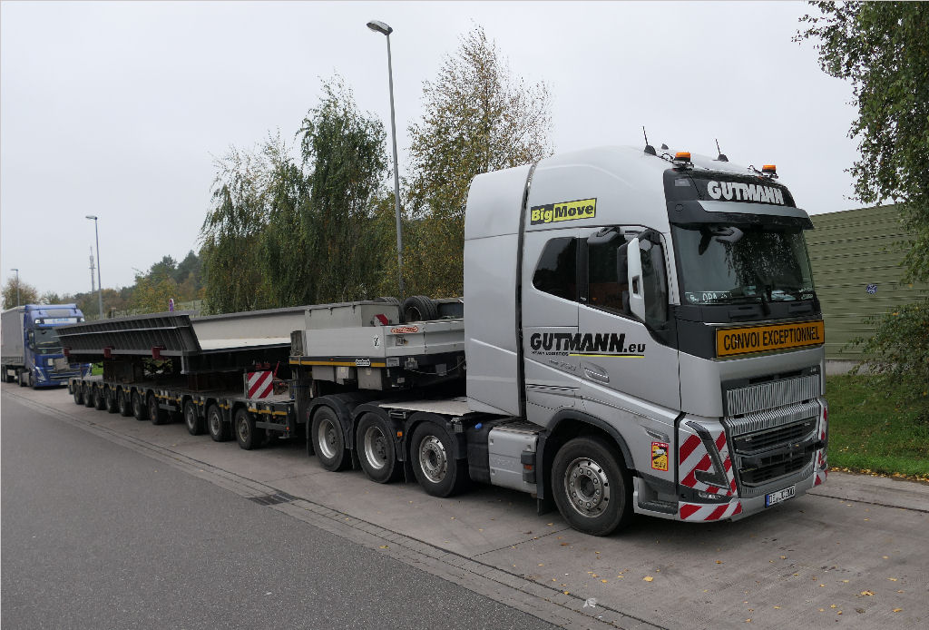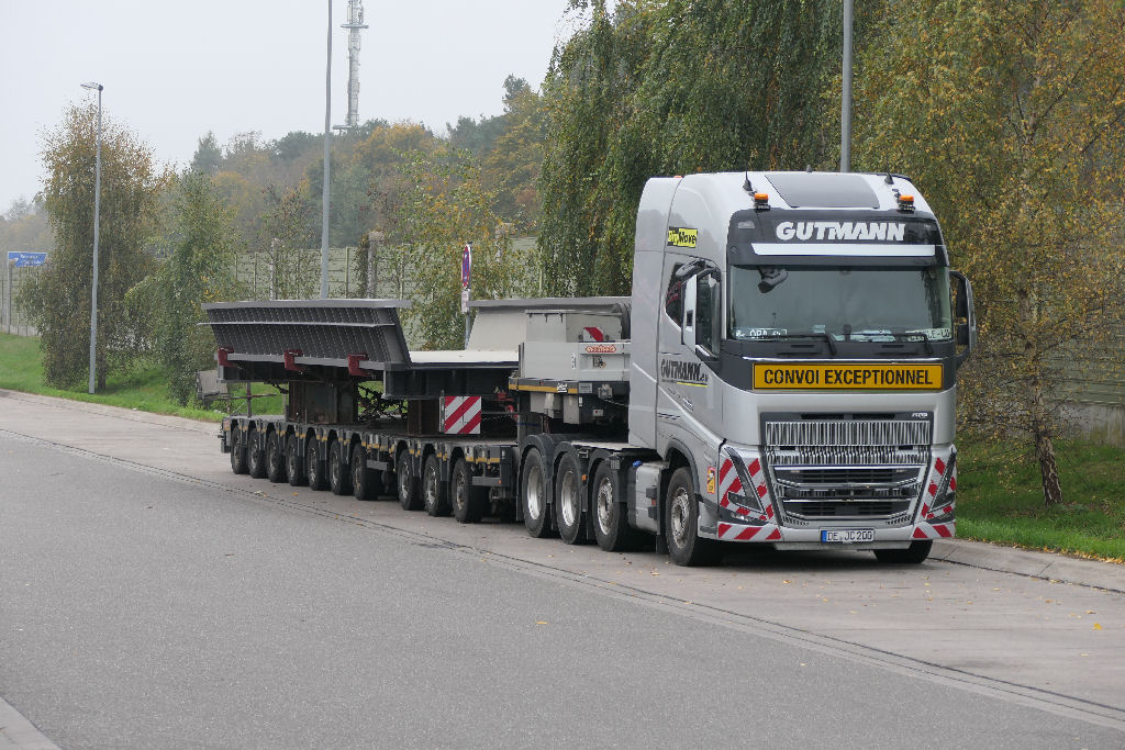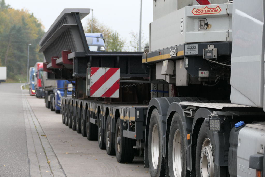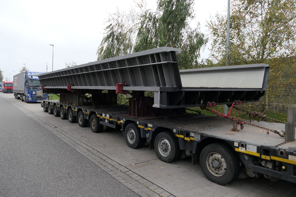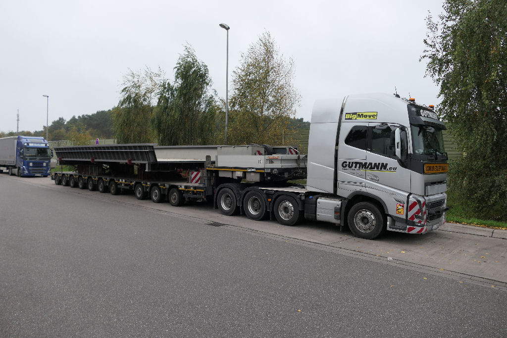 Volvo FH 05 750 8x4 mit Eisenbahnbrücke für eine Baustelle in Schleswig Holstein
