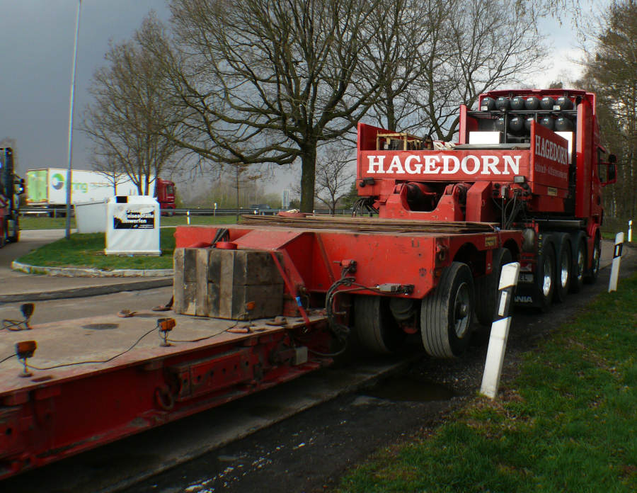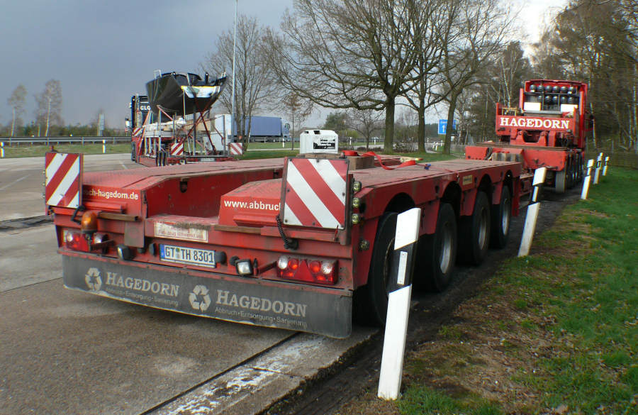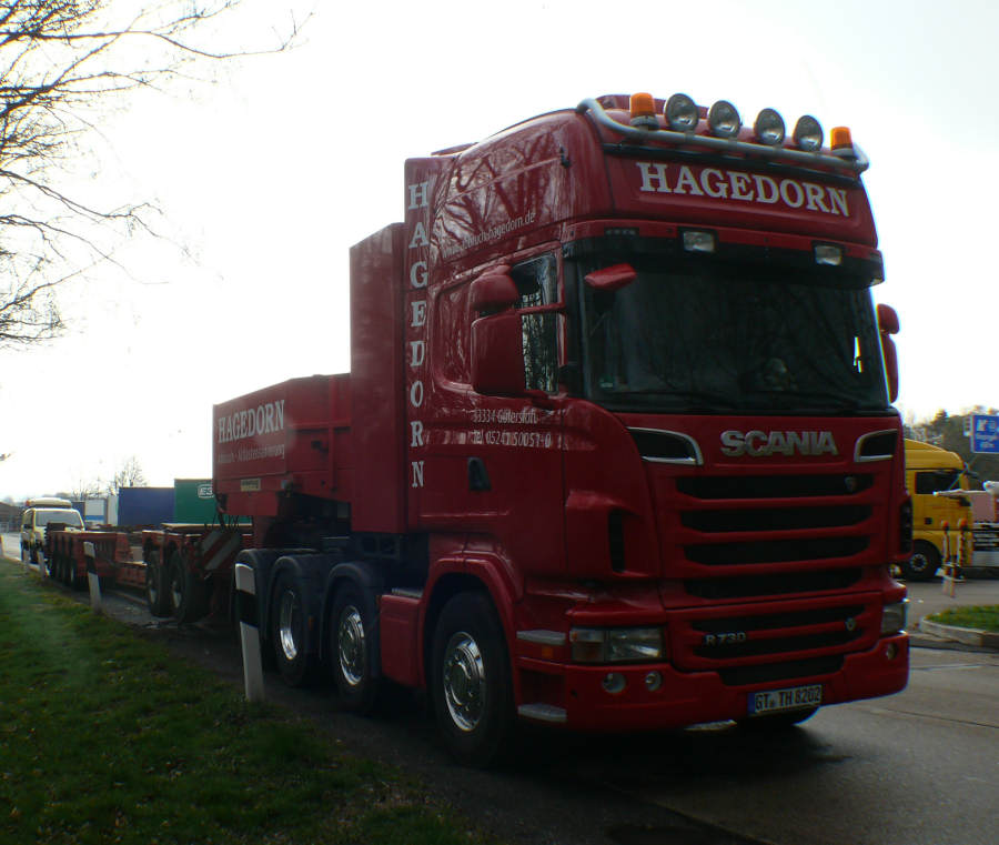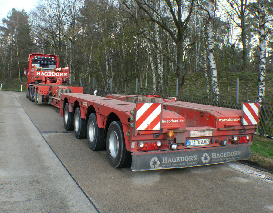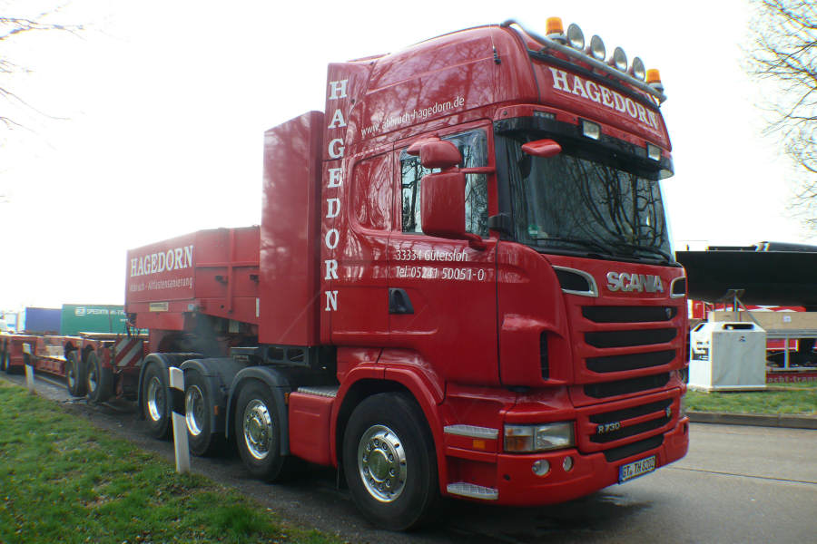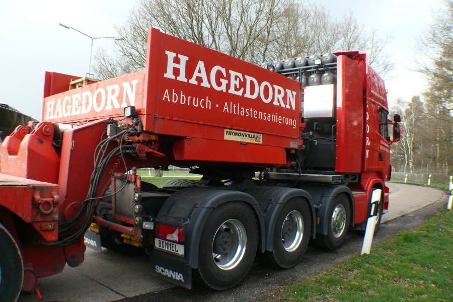 Scania R 730 8x4 mit Faymonville 2/4 Baggerbrückenkombination