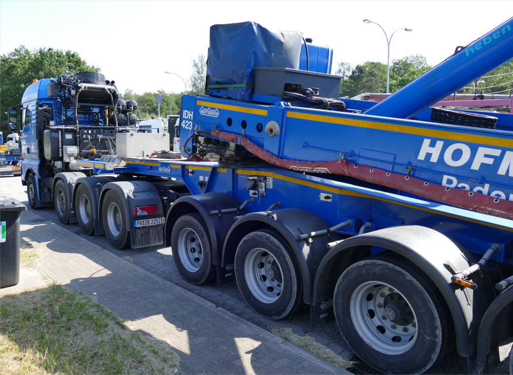 Es handelte sich um eine MAN 41.640 TGX XLX 8x4 (Hofmann Nr 252) mit Nooteboom 4/7 Mega Windmilltransporter und