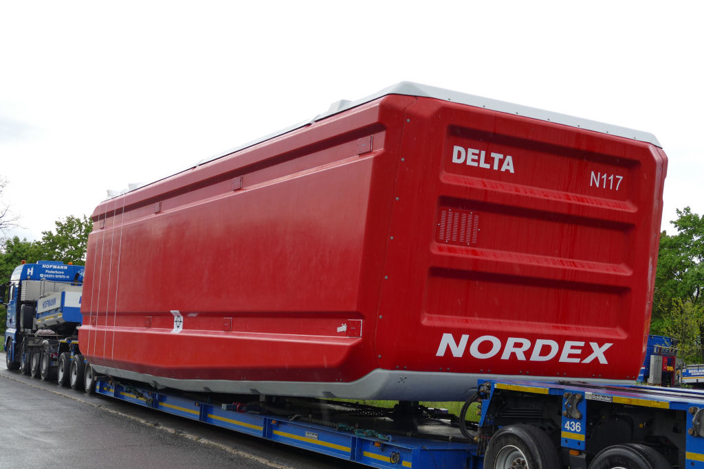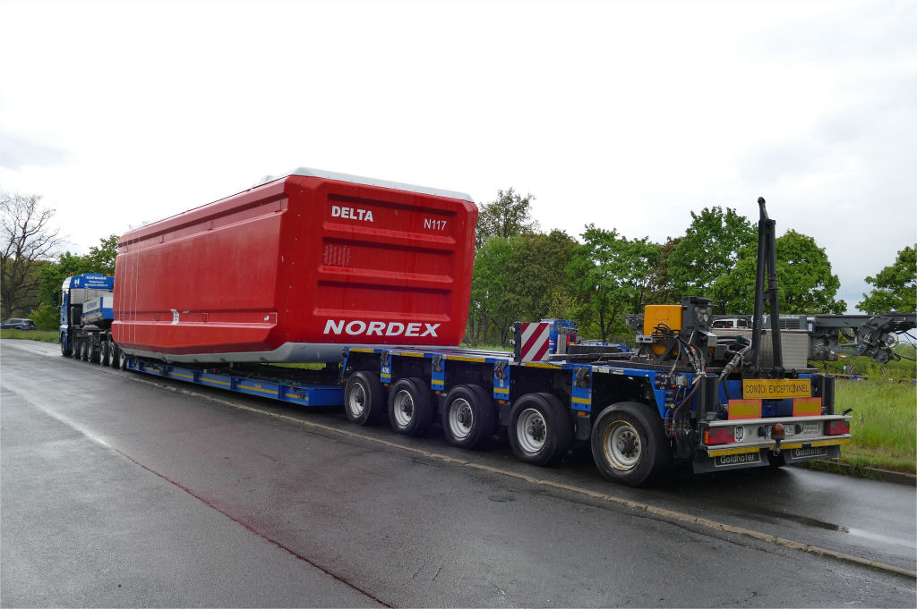 MAN 41.560 TGX XLX mit Goldhofer STZ-VP8 Tieflader und Nordex N 117 Gondel